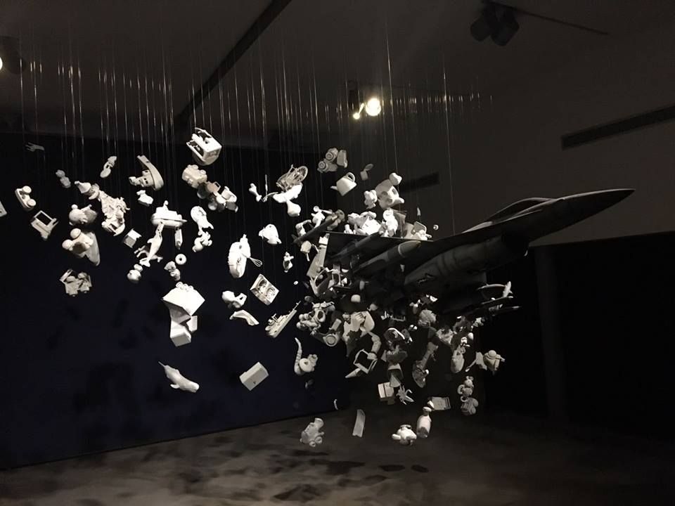 Ahora mismo estoy haciendo un proyecto para Buenos Aires, una de cuyas obras se llama “La barrera del sonido”, es un avión militar M-16 que rompe la barrera del sonido y al hacerlo genera un cono, un efecto físico que se visualiza en una milésima de segundo. Yo estoy recreando ese cono, pero con puros objetos cotidianos que tienen relación con los niños, el juego, la infancia, el hogar... todos esos objetos quedan suspendidos en el aire al romperse la barrera del sonido. Subliminalmente está la realidad que vivimos hoy en día, el caso más directo es Siria, pero hay muchos otros lugares de genocidio de los cuales no se habla porque son lugares que no tiene petróleo o no tienen relevancia geográfica, por lo tanto, pasan a segundo plano.