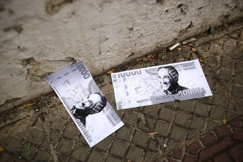 Una de los carteles simuló un afiche de búsqueda policial, con la foto del ex Presidente y la consigna "Se busca: Sebastián Piñera Echenique, el ladrón más grande de Chile".