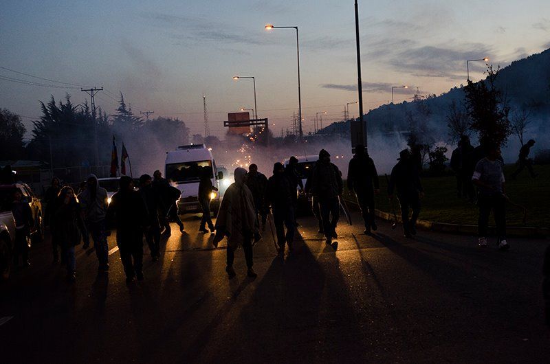 No exenta de la vida de violencias que los rodeó, la jornada terminó con un duro enfrentamiento con operarios del GOPE de Carabineros. Al mismo tiempo que se desarrollaba el velorio, la casa de Fredy Marileo, primo de Luis, era allanada. No había orden alguna, pues la última querella por Ley Antiterrorista presentada por el gobierno -por la quema de siete camiones hace unas semanas- permite que este tipo de solicitudes se mantengan en secreto.