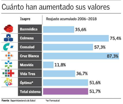 Según el presidente de la Asociaciónd de Isapres Rafael Caviedes, la cifra "es inferior al aumento en 68 por ciento de los gastos en salud y licencias médicas que hubo en el mismo periodo. Eso demuestra que las aseguradoras han hecho tremendo esfuerzo por no traspasar la totalidad de sus costos a los afiliados".