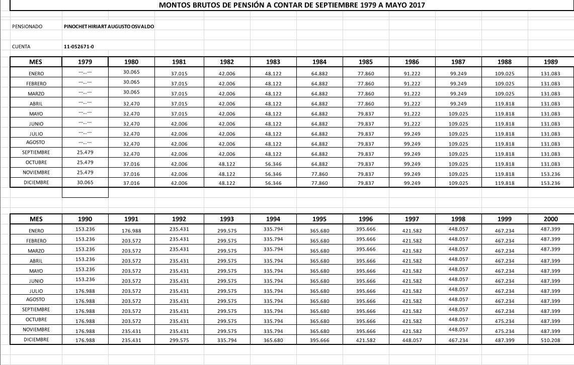 Descarga completo el cuadro de pensiones 1979-2017 de Augusto Pinochet Hiriart en este link.