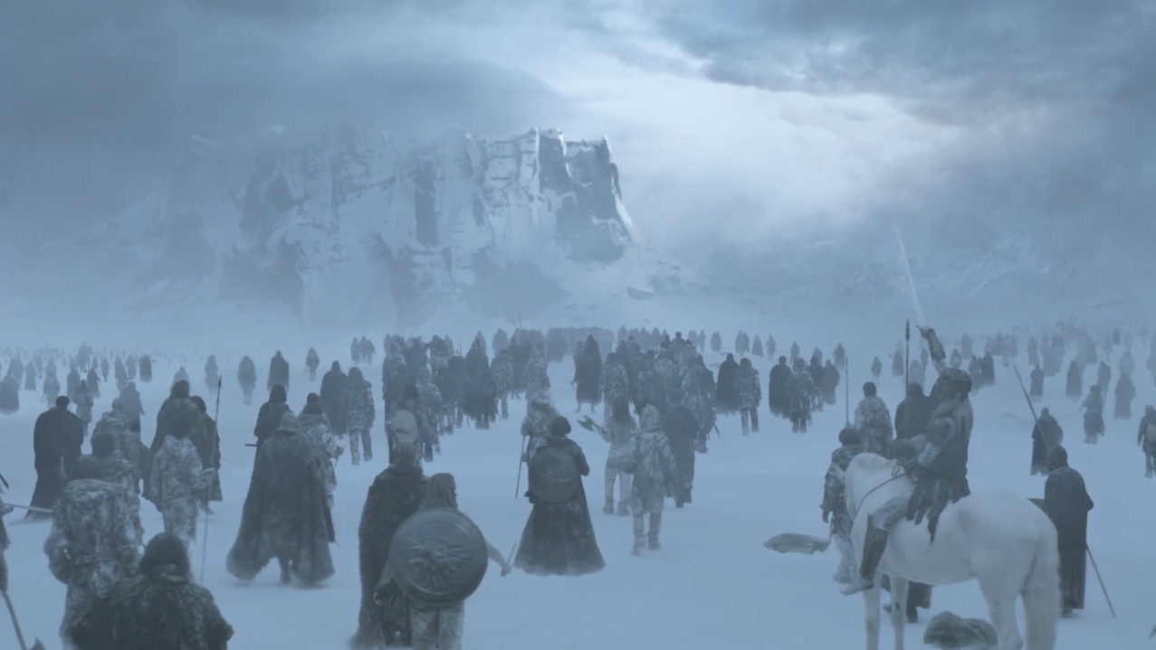 Pero para responder profundamente la pregunta por el pueblo, habría que dejar de lado los grandes nombres y las grandes dinastías, a fin de fijarnos en cuál es el lugar de aquellos que no tienen nombre y que son simplemente cualquiera. Para ello, hay que recordar el elemento de mayor relevancia en la serie, aquel que marca desde la primera escena del primer capítulo toda la trama, un elemento a veces olvidado en el análisis o interpretado como una simple analogía del calentamiento global: desde el norte hacia el trono, se dirige una multitud inagotable de zombies encabezados por un rey muerto-viviente, el Rey de la Noche. Esta multitud de zombies se acerca a paso lento durante toda la serie, amenazando con destruir todo lo que esté a su paso, caminando sin una finalidad, dirigiéndose al trono sin el deseo de poder. Es interesante que la serie cuente con la figura de los muertos-vivientes como la mayor amenaza para la humanidad, precisamente cuando nos remitimos a la figura del zombie y lo que conlleva. Al revisar la historia de los zombies en el cine (un trabajo que desarrolla de gran manera Adolfo Vera), podemos fijarnos en el ya muerto George A. Romero, el gran cineasta creador del imaginario zombie desde finales de los años 60, con su The night of the living dead (1968). La idea de Romero siempre fue sostener la figura del zombie como crítica del sistema capitalista y las relaciones políticas corrompidas: la vida del zombie sería una vida emancipada del deseo capitalista y de sus relaciones de poder, sería una simple vida que marcha sin un sentido claro. Los zombies encarnarían a aquellos que abandonaron esta vida para vivir otra, sería el grupo de los olvidados por la historia. Y en el caso de Game of Thrones, tenemos que son los que avanzan para acabar con la rueda de la historia, para destruir el trono y acabar con la humanidad.
