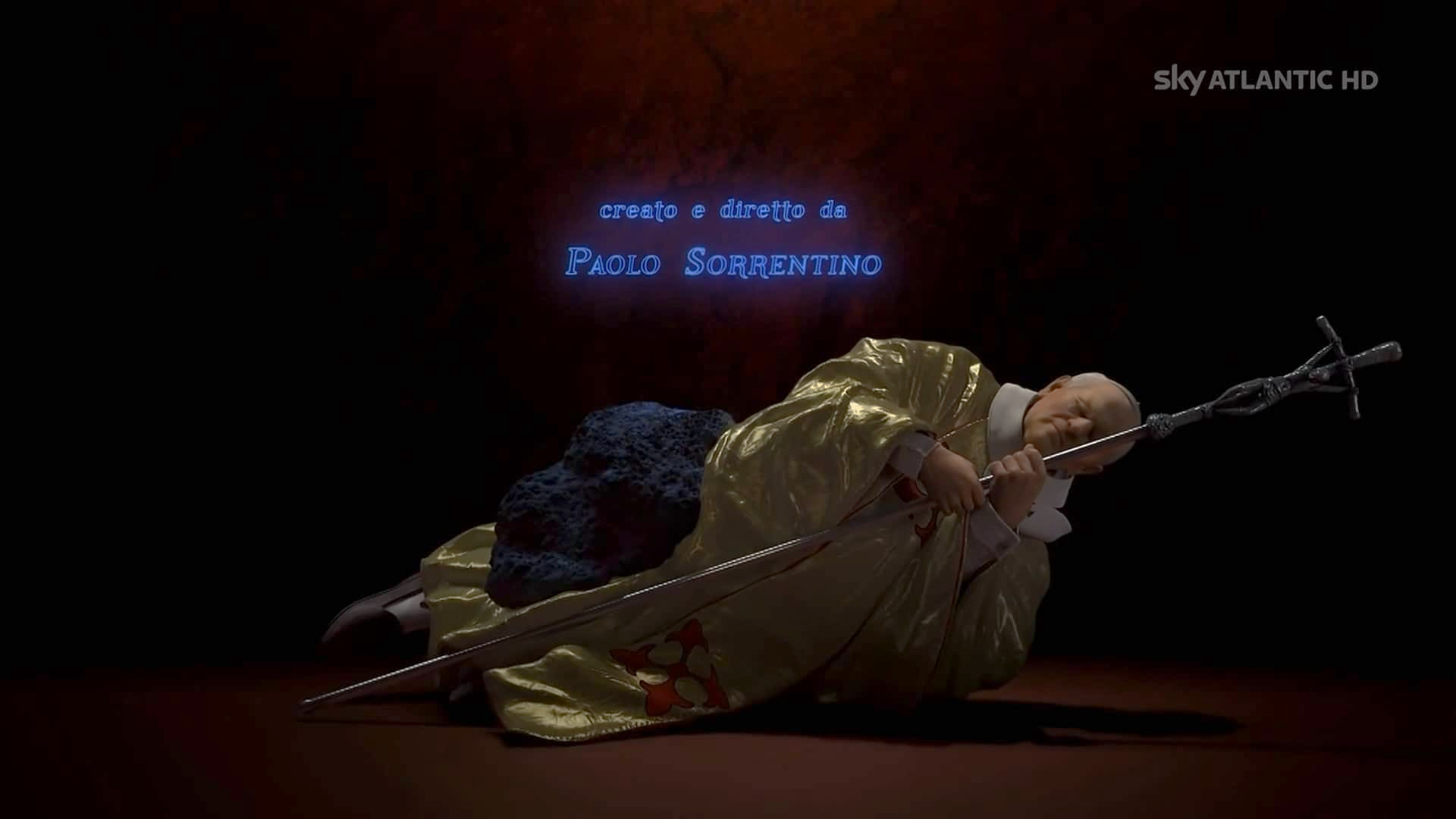 Sin embargo, antes de convertirnos en testigos de la variación de dichas relaciones, lo primero que llama la atención de la serie es que su radicalidad audiovisual está notablemente sintetizada en la cortina con la que se abre cada capítulo. Lo que parte siendo una estrella fugaz se va convirtiendo en un meteorito mientras cruza junto al Papa una galería de cuadros que vemos pasar uno tras de otro. El objeto celeste va transformándose al ritmo de la caminata del Papa hasta que, tras un giro de este último hacia la cámara para guiñarnos el ojo, impacta a una escultura que representa a Juan Pablo II que entonces cae batida en una alfombra roja.