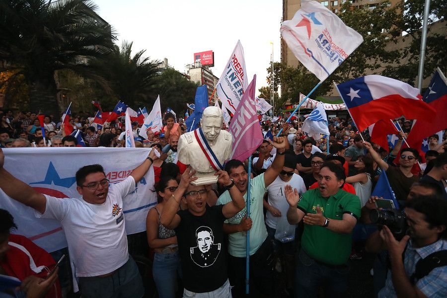 "Chi chi chi, le le le, Viva Chile y Pinochet" fue uno de los cánticos de un grupo de adherentes a Sebastián Piñera que celebraron su triunfo en la segunda vuelta de las elecciones presidenciales.