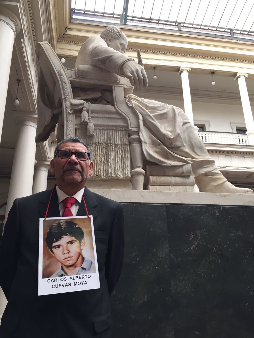 Está Juan. Juan Moya Cuevas. Juan viene a buscar el título de su hermano Carlos, dos años menor. Carlos estudiaba Ingeniería Civil, tenía todos sus ramos aprobados para pasar al cuarto año, en Beauchef, y ya tenía listo su futuro especializándose en Geología. Pero para el pesar de su destino se le ocurrió militar en las Juventudes Comunistas, cuando ser militante de una idea en esta tierra se podía castigar con lo que se le castigó a él. Un día su madre fue testigo de lo que más temía. Lo secuestraron, lo arrancaron de la casa, en San Miguel, en San Francisco con Carlos Valdovinos, y se lo llevaron a Londres 38. Pasaron dos dias de búsqueda frenética, desesperada, en shock constante. Dos días después, un sábado, Carlos junto a otros cuatro militantes de izquierda era presentado al país por el gobierno, por la prensa, como extremistas dinamitando una torre de alta tensión en Cerro Navia. Carlos y su madre pudieron enterrar a ese estudiante de Ingeniería, pero sin velarlo, esa condición les puso el instituto médico legal. Al vestirlo, la verdad fue irrefutable: marcas de tortura en las manos, en los pies. Lo mismo en sus compañeros de tortura: ojos menos, hoyos de pernos en la cabeza. Llegó 1991 y la madre de Carlos se fue. Murió. La misma que nunca dejó de pensar en su hijo que iba a ser geólogo, la misma que no pudo ser testigo de la condena que recibió Manuel Contreras por este montaje conocido como Plan Leopardo. La misma que hoy desde algún rincón donde vive la memoria observa a su otro hijo, a Juan, llevando a casa el cartón que ella merecía. Y lo lleva soberbio, mostrándolo a quien quiera mirarlo, firme como vino.