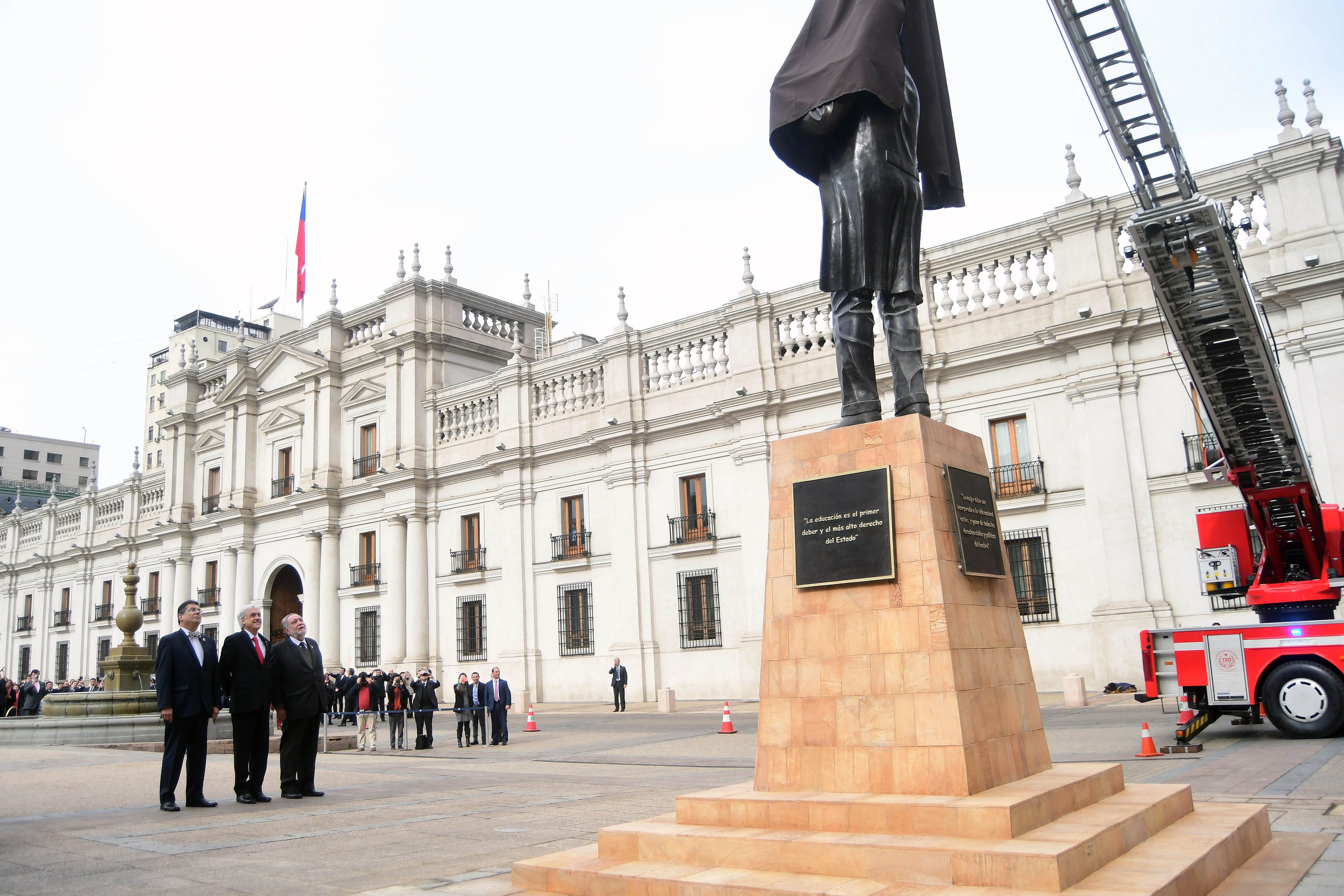 Este martes se inauguró la estatua de Pedro Aguirre Cerda en la Plaza de la Constitución, frente a La Moneda, y lo hizo entre gran cantidad de público, aunque no todos estaban para lo mismo.