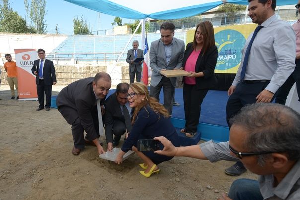 Cathy Barriga pone la primera piedra de la pista "Los Toros" / Municipalidad de Maipú[/caption]