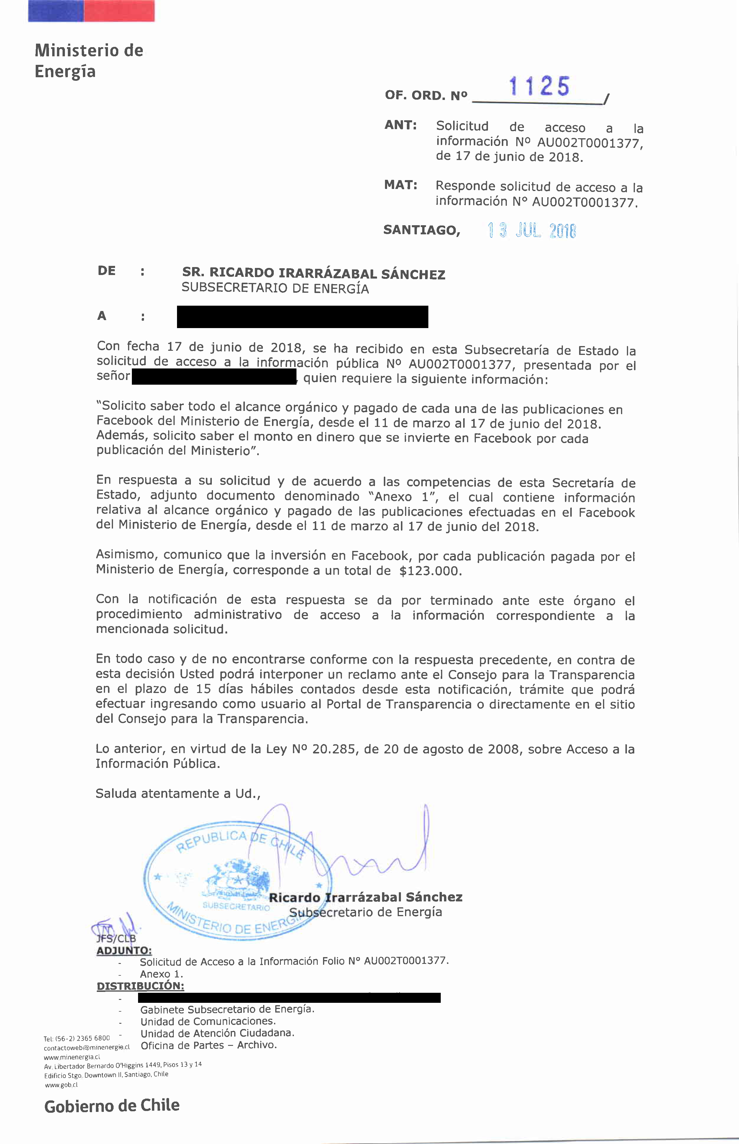 Desde el organismo han decidido inyectar más recursos, pero hasta el momento, no han tenido resultados. Por ejemplo, desde marzo de 2018 el Ministerio de Energía paga cerca de $123 mil por cada una de sus publicaciones en la misma red social, tal como detalló el subsecretario de Energía, Ricardo Irarrázabal, en respuesta a una solicitud realizada vía ley de transparencia. De este modo, solo en el pasado mes de junio la cuenta realizó un total de 17 publicaciones, lo que suma más de 2 millones de pesos.
