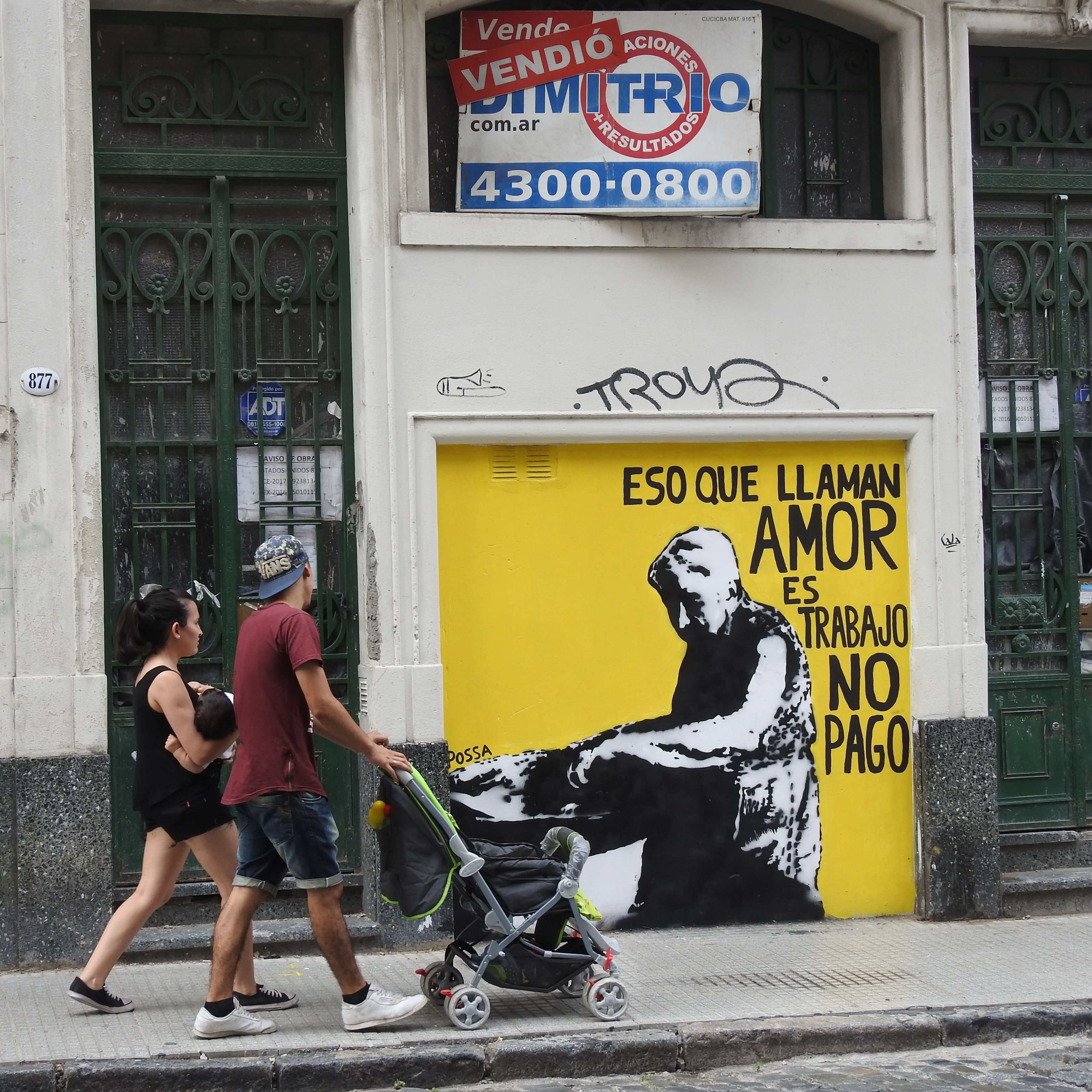 La inquietud creadora que #AilénPossamay cultivó durante su bucólica infancia en el pueblo de Junín al sur de Neuquén, devino en una Licenciatura en Artes Visuales en la ciudad de Buenos Aires. Orientó esos estudios al grabado para iniciar una obra gráfica volcando todo su pensamiento artístico y político en la calle. La joven Ailén hace de los muros de Ciudad Autónoma, Morón y Provincia portavoces de una consigna célebre en las veredas de la fuerza social feminista: “Eso que llaman amor, es trabajo no pago” certera idea de la teórica y activista italiana Silvia Federici (referente de investigación en la tesis universitaria de Ailén) que la artista lanza al espacio público para punzar el sofocante imaginario patriarcal de la ama de casa, ese ser unidimensional predestinado 'por naturaleza' al trabajo doméstico, al rol no remunerado de cuidar.