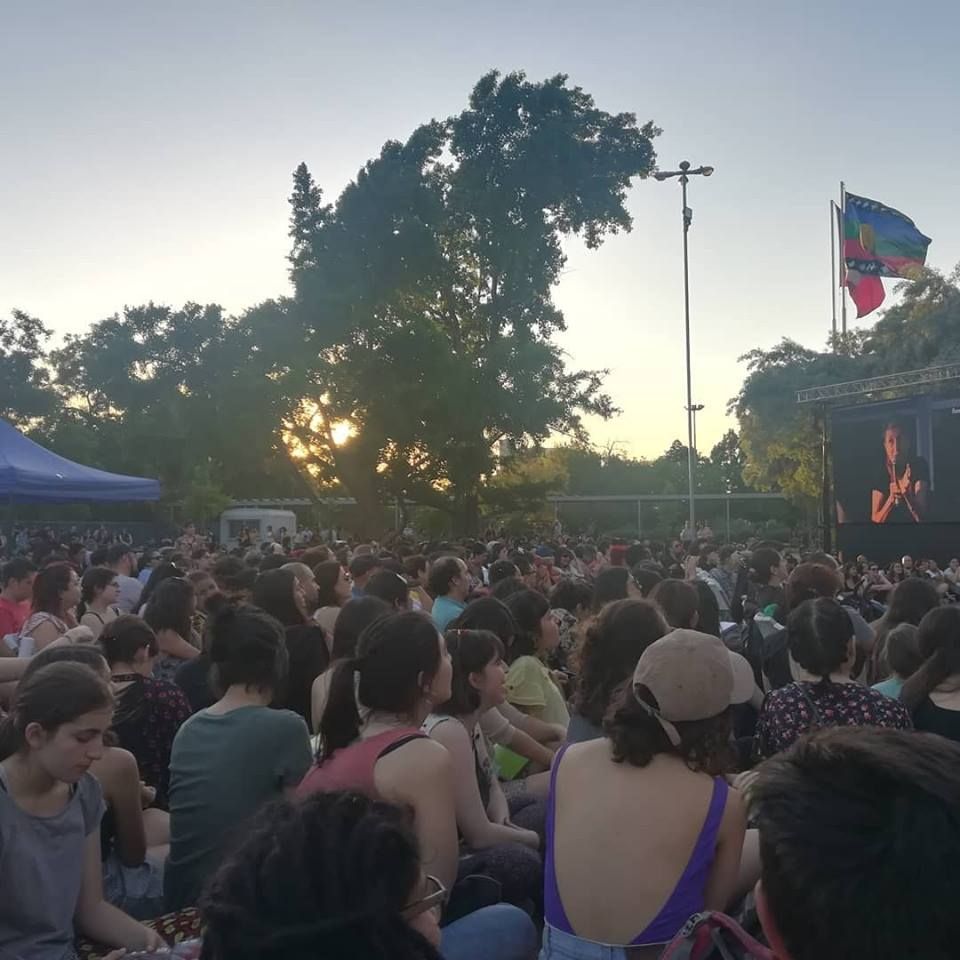 En las preguntas, la feminista también fue consultada sobre lo que ocurre con la lucha contra el extractivismo y con los dirigentes y dirigentas sociales defensoras de la tierra que son asesinados por agentes privados. La multitud, que se mantuvo casi inmóvil durante las dos horas, tendidos en el pasto o aglutinados alrededor del escenario, aplaude al escuchar los nombres de Macarena Valdés, Juan Pablo Jiménez, Alejandro Castro, Nelson Quichillao y de Rodrigo Cisternas.