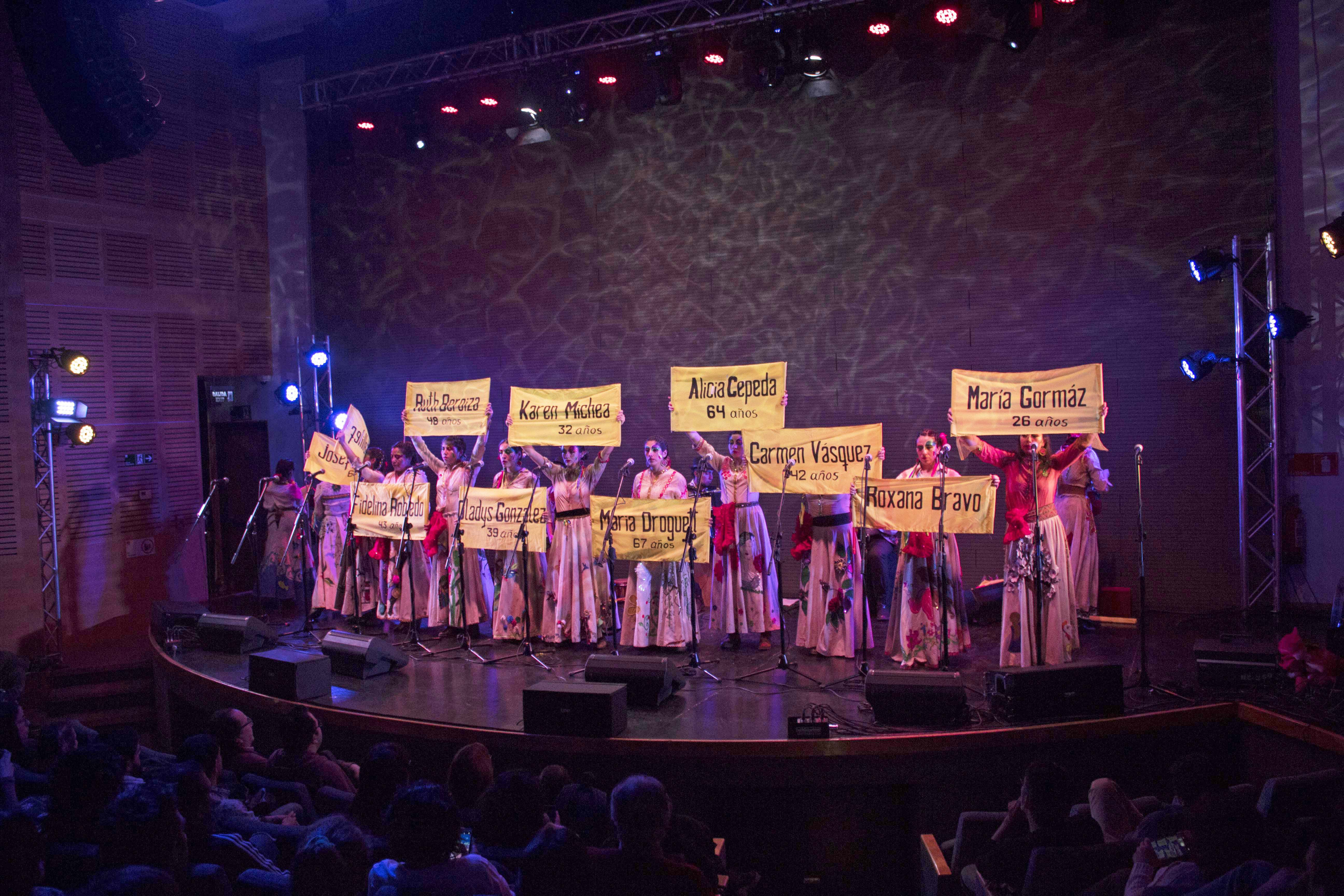 La única murga chilena conformada solo por mujeres colma de crítica social el escenario del Barrio Yungay en 35 minutos, con letras propias y melodías prestadas, entre otros, del repertorio de Violeta Parra, Los Celestinos y Manuel García. Termina la presentación y todas bajan de la tarima en hilera, bailando, con contagiosa alegría, al estilo de sus mentoras: las murgas uruguayas. El público abre un espacio y las vitorea, mientras ellas hacen la canción de retirada inspirada en un hit de Camilo Sesto: