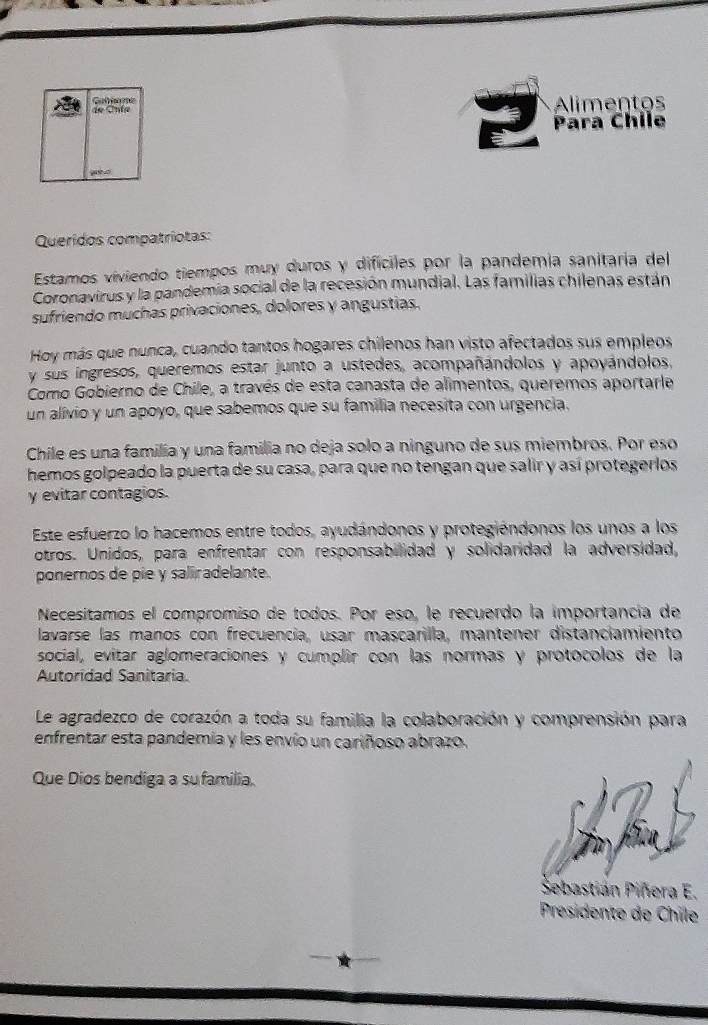 Este martes se dio a conocer un documento que se filtró desde la Intendencia del Ñuble, donde se refleja un instructivo con órdenes de acción para quienes entreguen las cajas de alimento del gobierno como ayuda en medio de la pandemia.