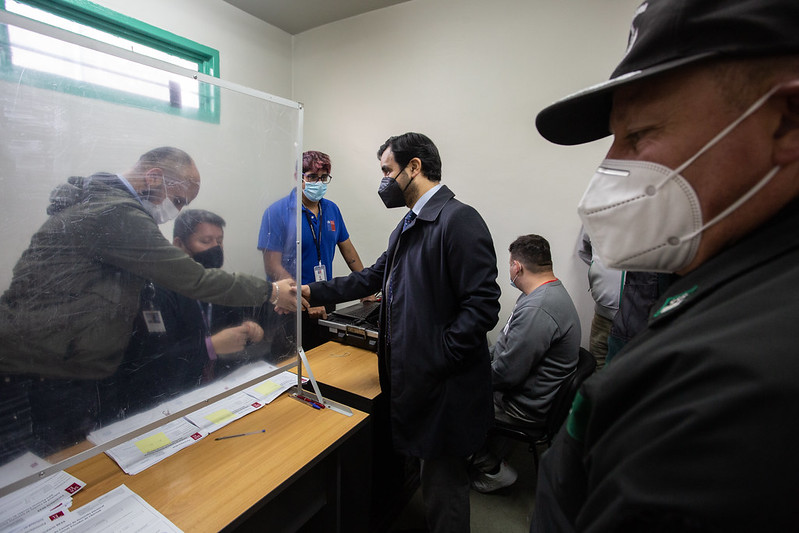 En paralelo a la campaña de vacunación, en el penal estuvieron presentes representantes del Servicio Electoral, realizando el cambio de domicilio para que los reos puedan sufragar en el plebiscito de salida, a celebrarse el próximo 4 de septiembre. 10.005 personas privadas de libertad, que no han perdido sus derechos políticos, podrán, por primera vez en la historia, participar de un proceso eleccionario a nivel nacional.
