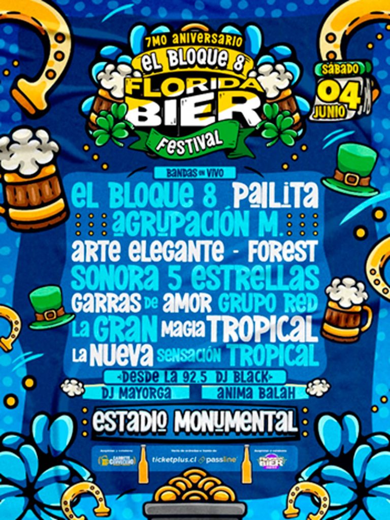 Todos los fanáticos de la cerveza, la gastronomía y las mejores bandas de nueva cumbia a nivel nacional podrán asistir a una nueva versión de la fiesta de la cerveza “Florida Bier”, que se realizará el próximo sábado 4 de junio en el estadio Monumental de Macul, a partir de las 13:00 horas.