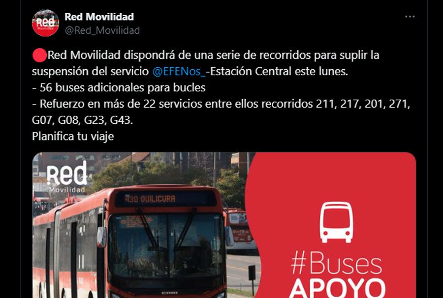 Ante esto, el ministro de Transportes Juan Carlos Muñoz indicó a la prensa que se reforzaron los trayectos de microbuses y colectivos, además de eliminar las paradas diferidas en la Línea 2 del Metro de Santiago para aumentar la oferta de carros.