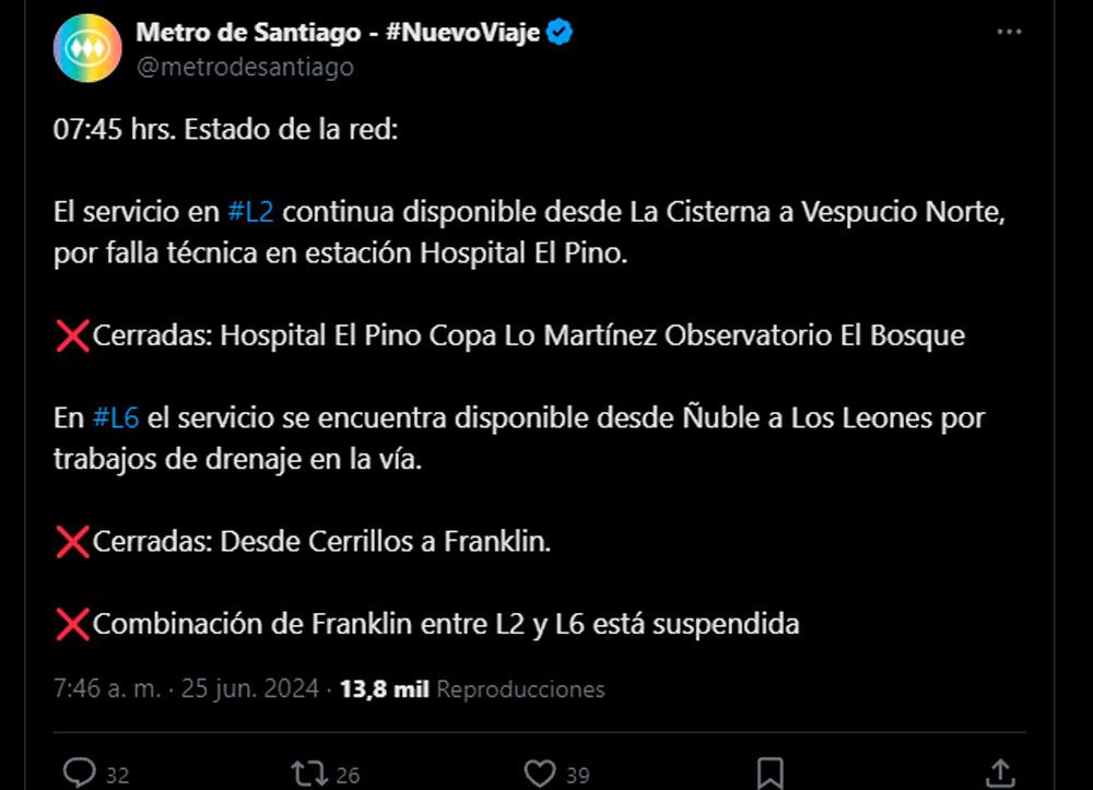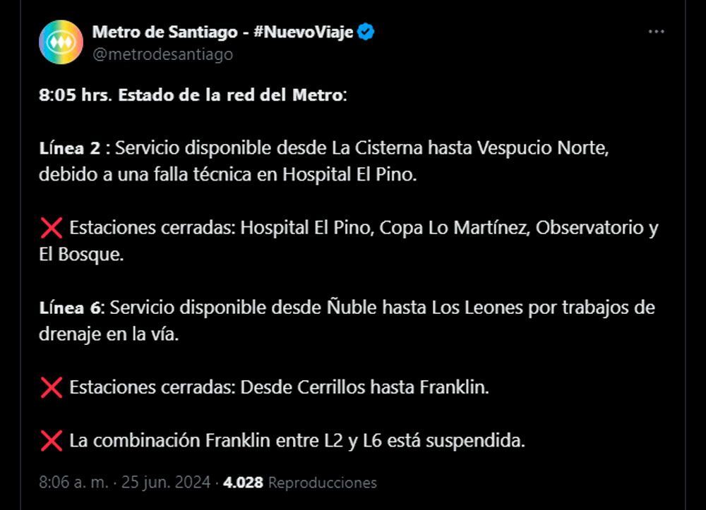 Para aumentar los problemas en la capital este martes 25 de junio con esta Alerta Metro, la Línea 2 que estaba siendo usada por la gente que se transporta en Metrotren de EFE y que no pudo por el paro de maquinistas, tuvo una falla.