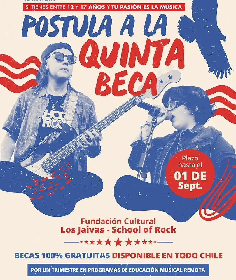 La Fundación Cultural Los Jaivas, creada por la legendaria banda nacional, junto a la academia internacional de música School of Rock, abrió la convocatoria para que niños y jóvenes del país puedan estudiar Educación Musical de forma totalmente gratuita gracias a sus becas.