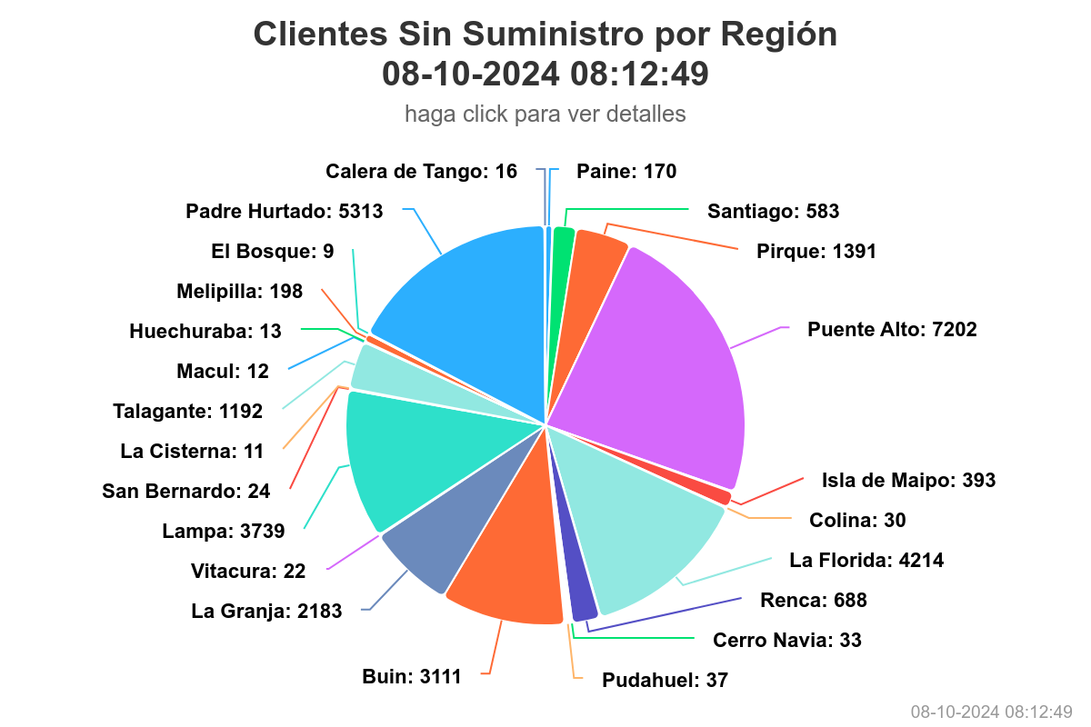 A las 08:00 horas, la Superintendencia de Electricidad y Combustibles (SEC) informó que 30.768 familias se encuentran sin energía eléctrica en la Región Metropolitana a causa de la lluvia, la cual fue de características débiles.