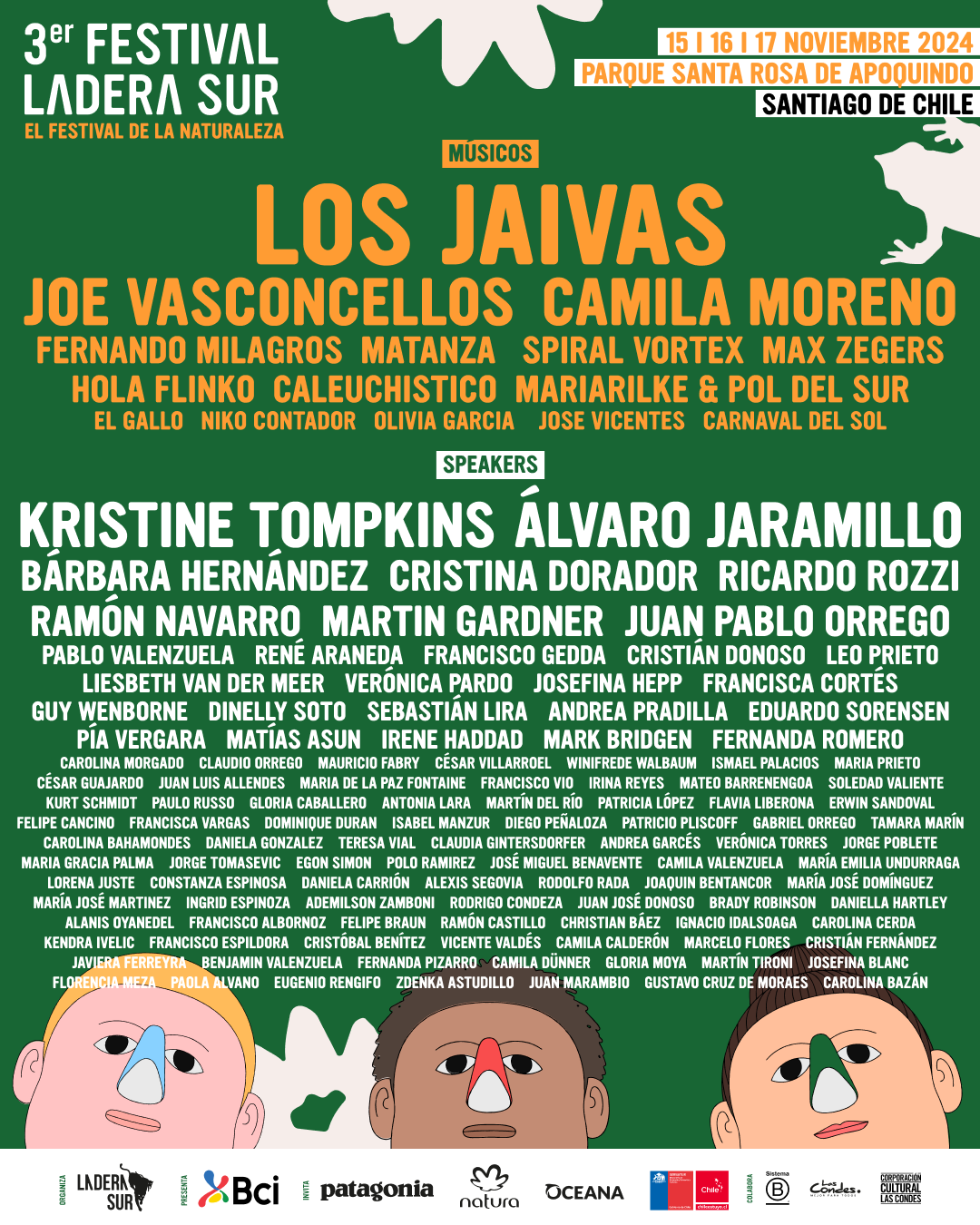 El Festival Ladera Sur anuncia su esperado line up y su principal lista de expositores, que prometen transformar el evento en un espacio musical y de celebración a la naturaleza. El encuentro anual, regresa con su tercera edición el 15, 16 y 17 de noviembre en el Parque Santa Rosa de Apoquindo. Junto con el anuncio de Line Up, comenzará la venta general de entradas, donde se podrá acceder al pase diario, como también al pase de 2 y 3 días, a través de ticketmaster.cl.