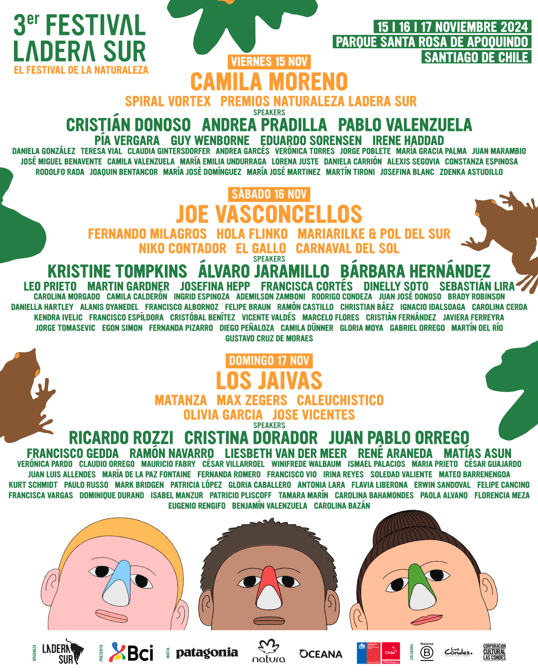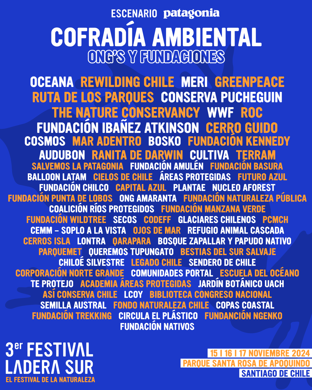 “Este tercer año volvemos con todo, la invitación es pasarlo bien con grandes bandas de música y potentes speakers nacionales e internacionales. Van a aprender mucho pero a la vez lo van a pasar increíble, es una fiesta en torno a la naturaleza. No dejen de ser parte de este movimiento que tanto necesitamos para proteger y conectar con nuestro planeta.” comenta Martín del Río, Fundador y Director de Ladera Sur.