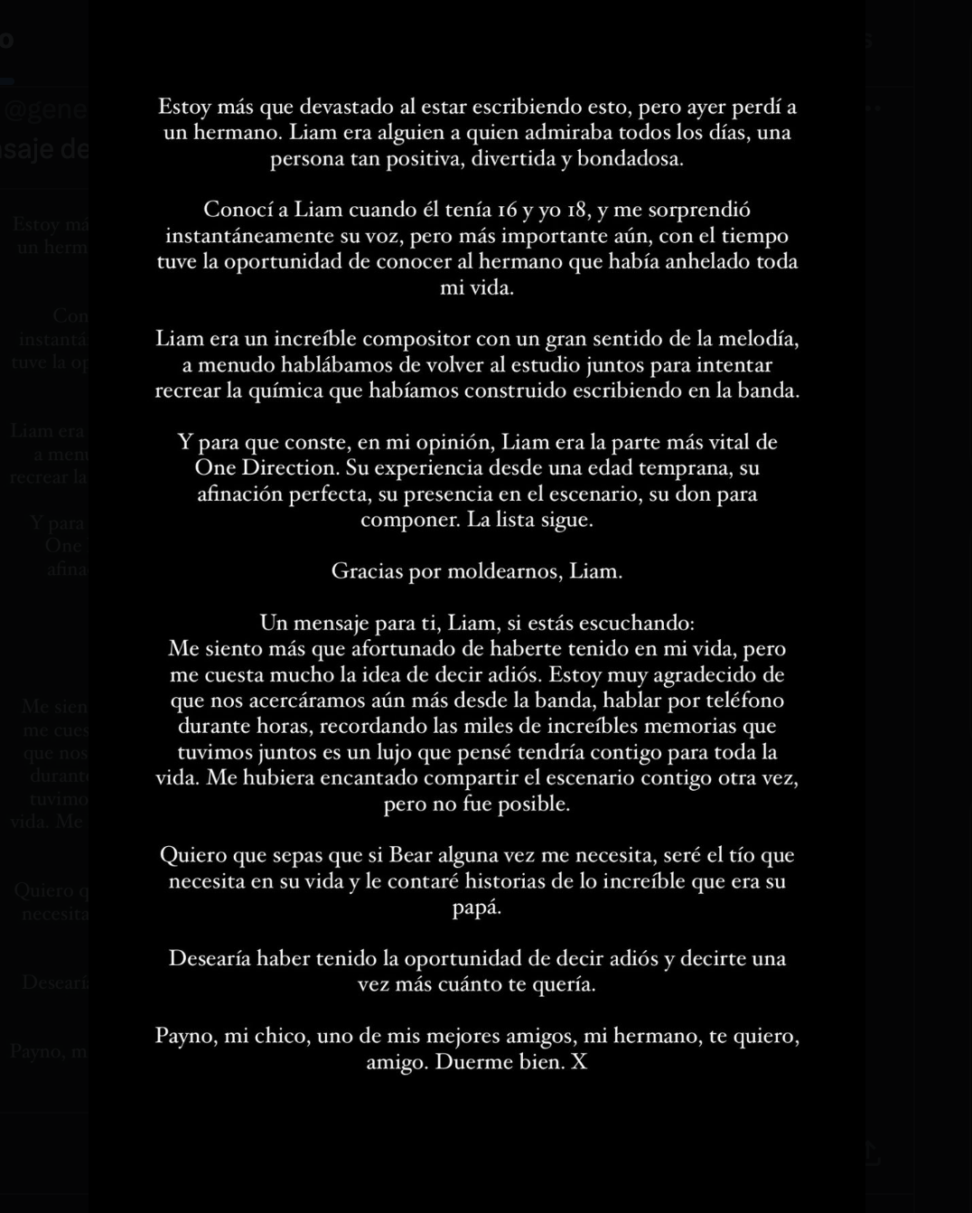 Este jueves, el cantante Louis Tomlinson, exmiembro de la agrupación musical One Direction, publicó una emotiva fotografía junto a Liam Payne, quien falleció por la tarde del pasado miércoles tras caer de un tercer piso de un hotel en Buenos Aires.