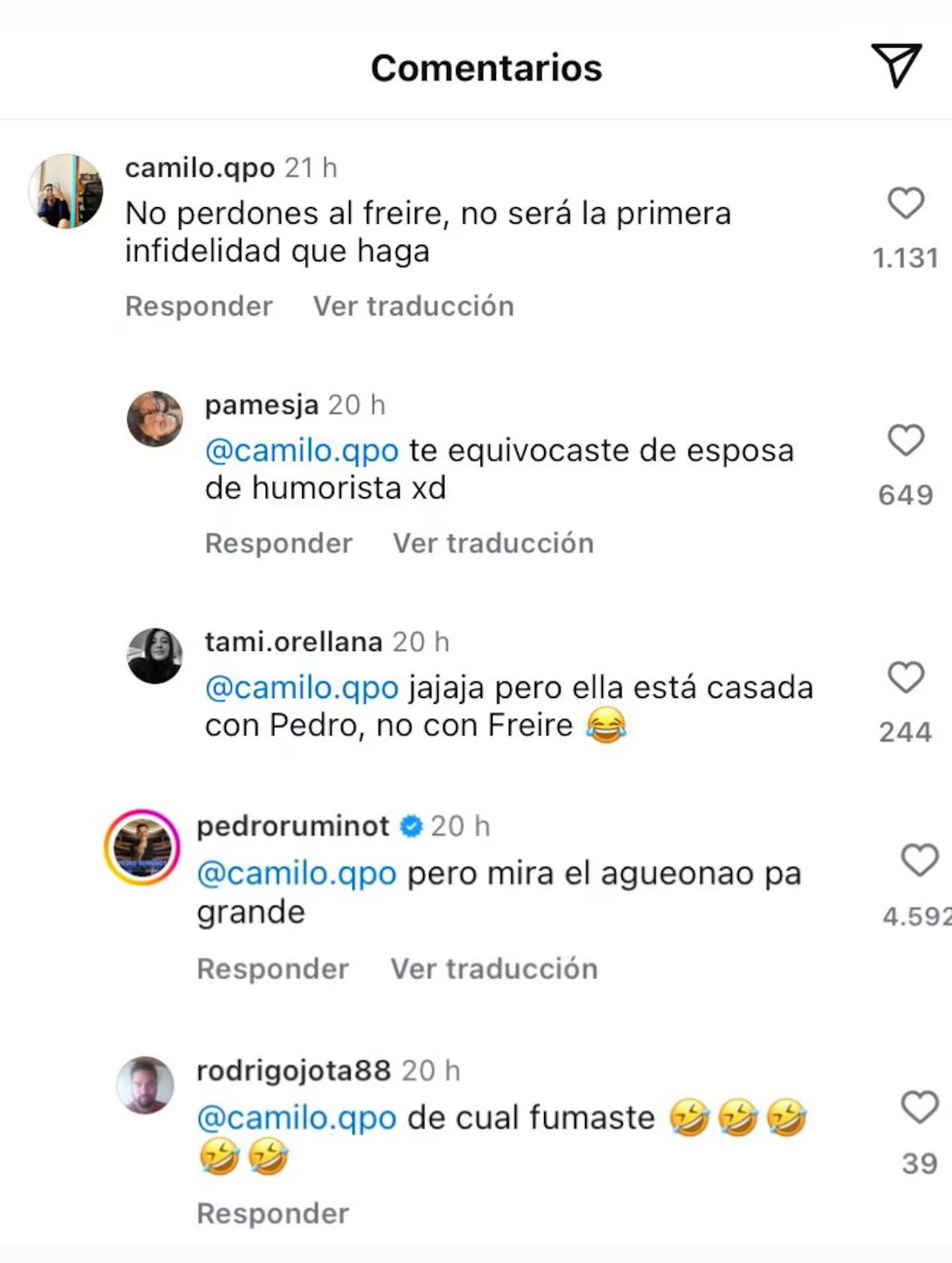 “No perdones a Freire, no será la primera infidelidad que haga”, le escribió uno que confundió a Freire con Pedro Ruminot, por lo que su respuesta se viralizó rápidamente por redes.