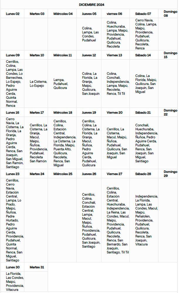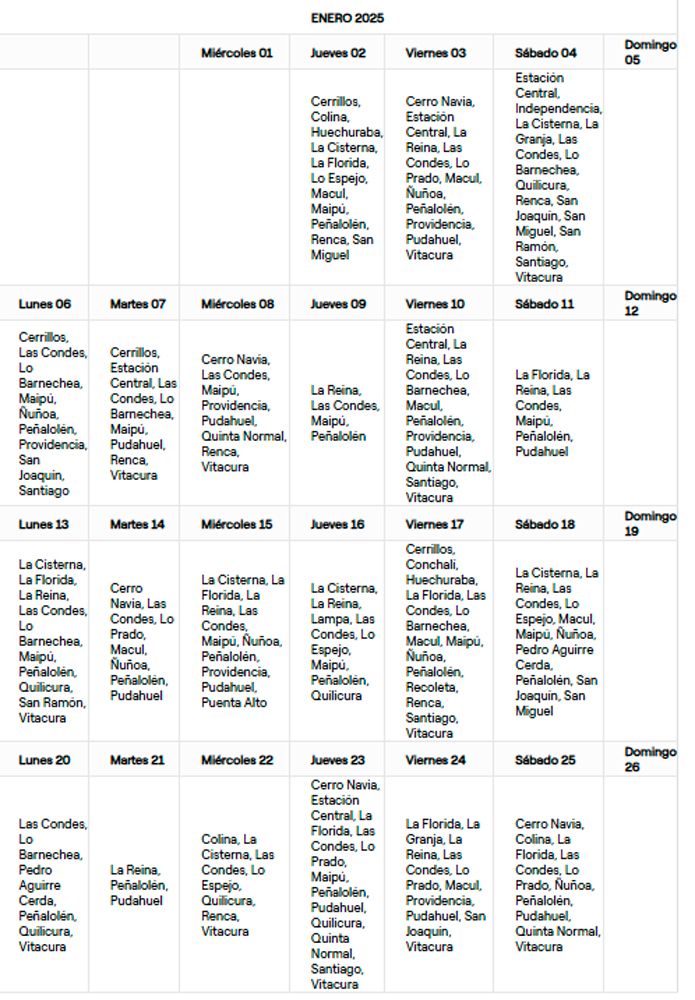 Las inspecciones comenzaron el 11 de septiembre y se extenderán hasta enero, de lunes a domingo entre las 09:00 y las 18:00 horas, con el siguiente calendario, el cual podría ser modificado:
