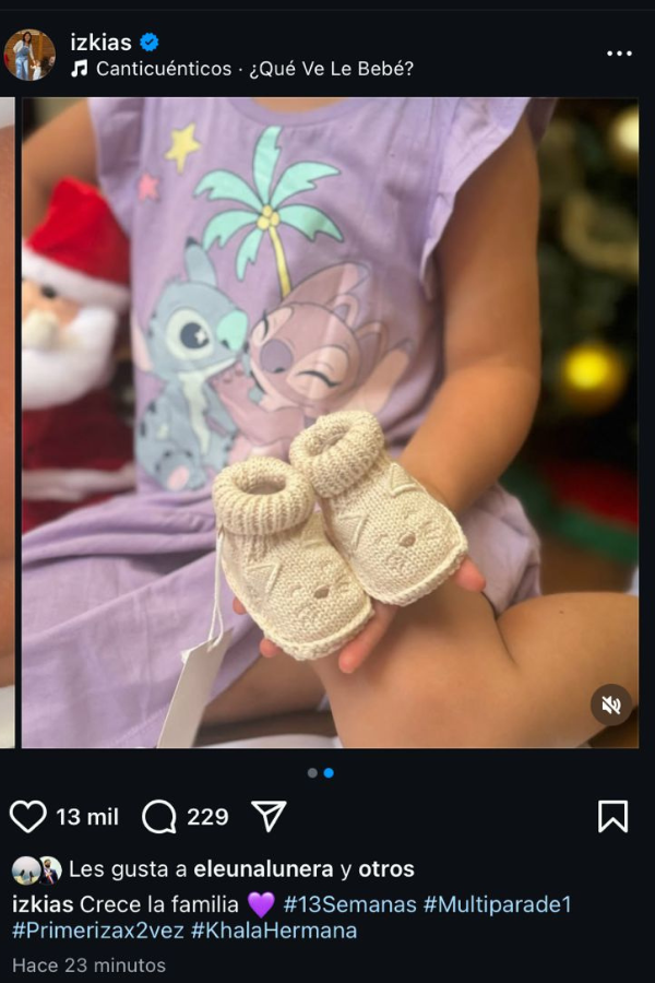 En el encabezado de la imagen escribió "Crece la familia", junto al hashtag "13semanas" que revelaría los meses de embarazo que tiene.
