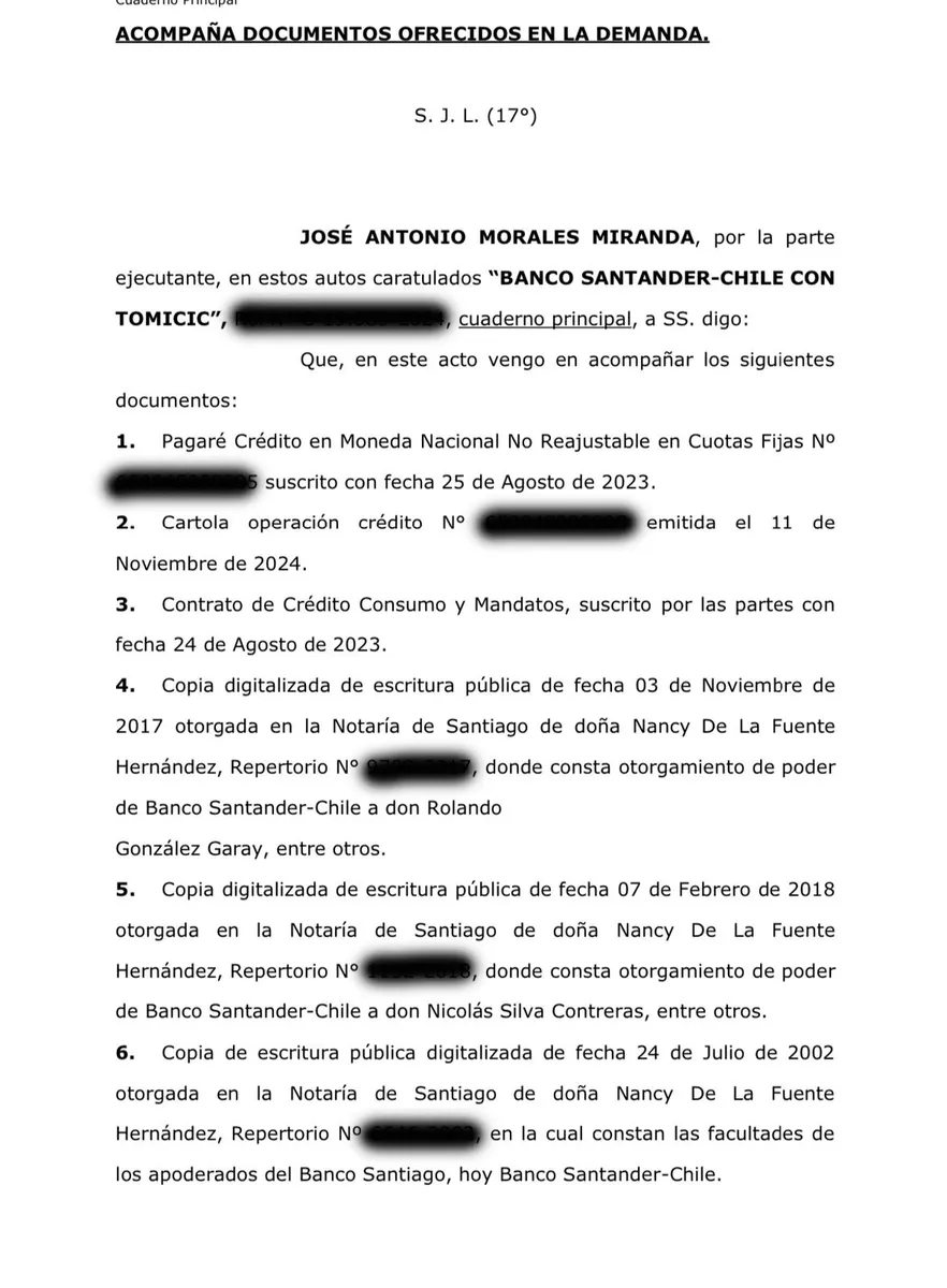 A esa acción se suma la que Banco de Chile presentó en octubre ante el 14° Juzgado Civil de Santiago, para el cobro del saldo un pagaré por $90 millones.