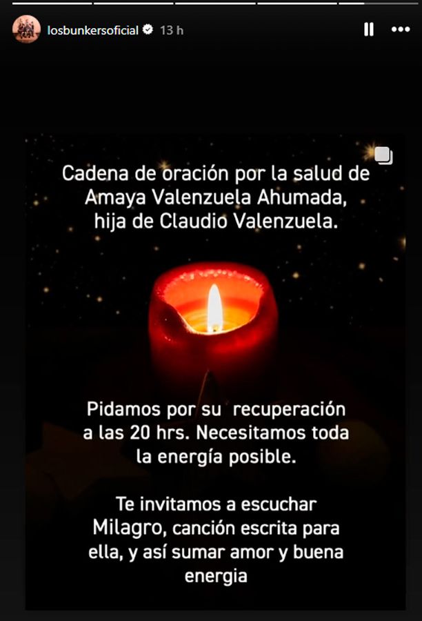 Este miércoles se conoció una actualización del estado de salud Amaya Valenzuela Ahumada, joven de 24 años que es hija del líder de Lucybell Claudio Valenzuela y que se encuentra en estado de suma gravedad.