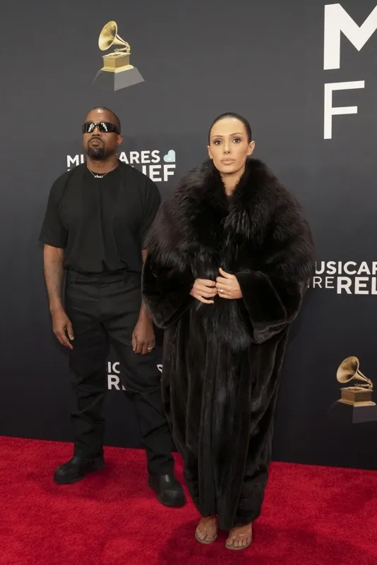 Censori estaba envuelta en un abrigo de piel de cuello alto que agarraba por delante y el cantante llevaba sus ya clásicas gafas de sol y camiseta y pantalón de tonos oscuros. Ambos llegaron rodeados de fuertes medidas de seguridad.