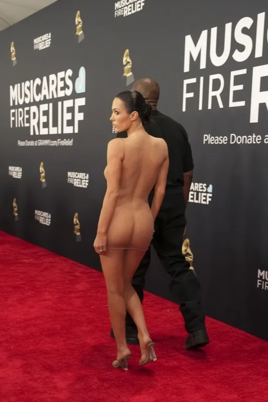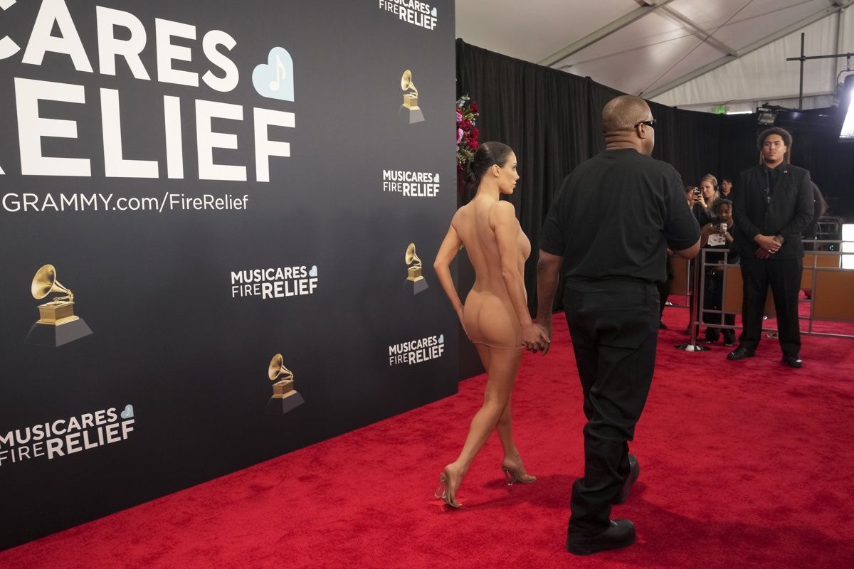 Una gran polémica se armó en la alfombra roja de los Premios Grammy, cuando este domingo la esposa del rapero Kanye West, Bianca Censori, lució un vestido completamente transparente que la hizo verse desnuda.