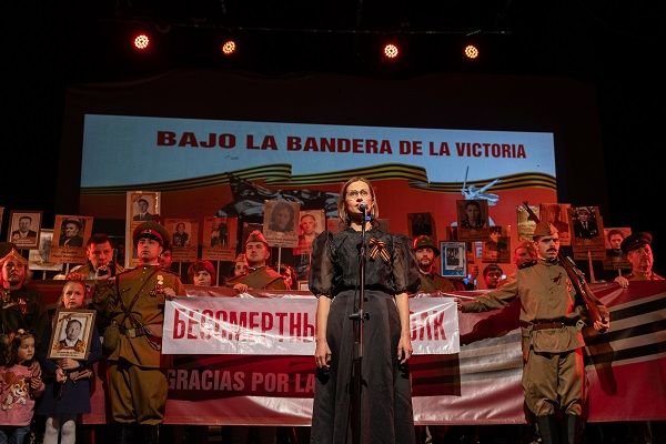 Otro acto se realizó en el Aula Magna del Liceo Manuel de Salas, lugar en el que se llevó a cabo el concierto festivo «Bajo la Bandera de la Victoria», al que asistieron más de 400 personas, y en el que, los conjuntos artísticos de la comunidad rusa y nacionales, presentaron vibrantes actuaciones musicales y teatrales en memoria de los héroes de la guerra
