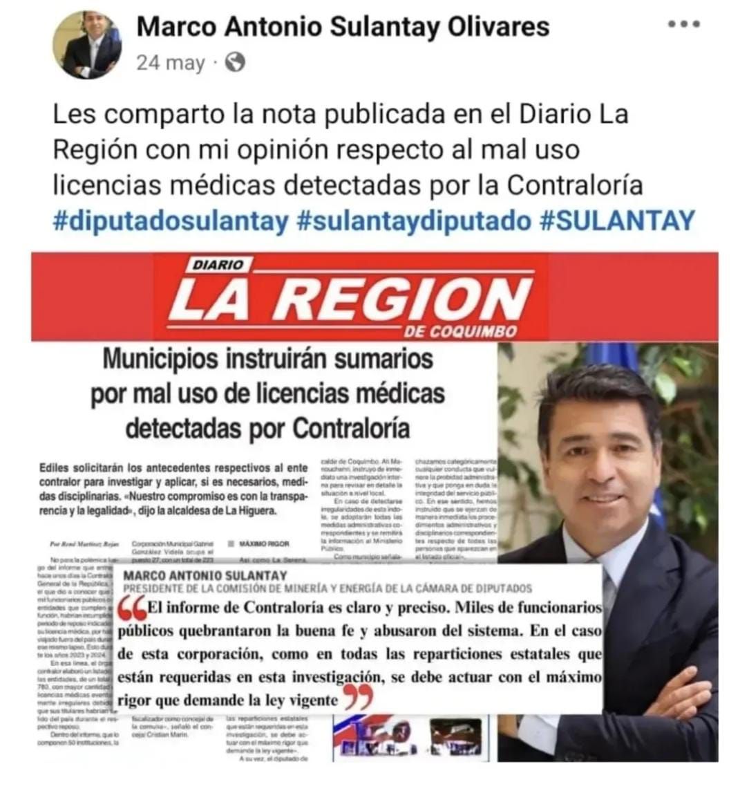 Esta noticia llega pocos días después que el mismo diputado Marco Sulantay publicara en todas sus redes sociales una entrevista donde habló durísimo contra los funcionarios denunciados.