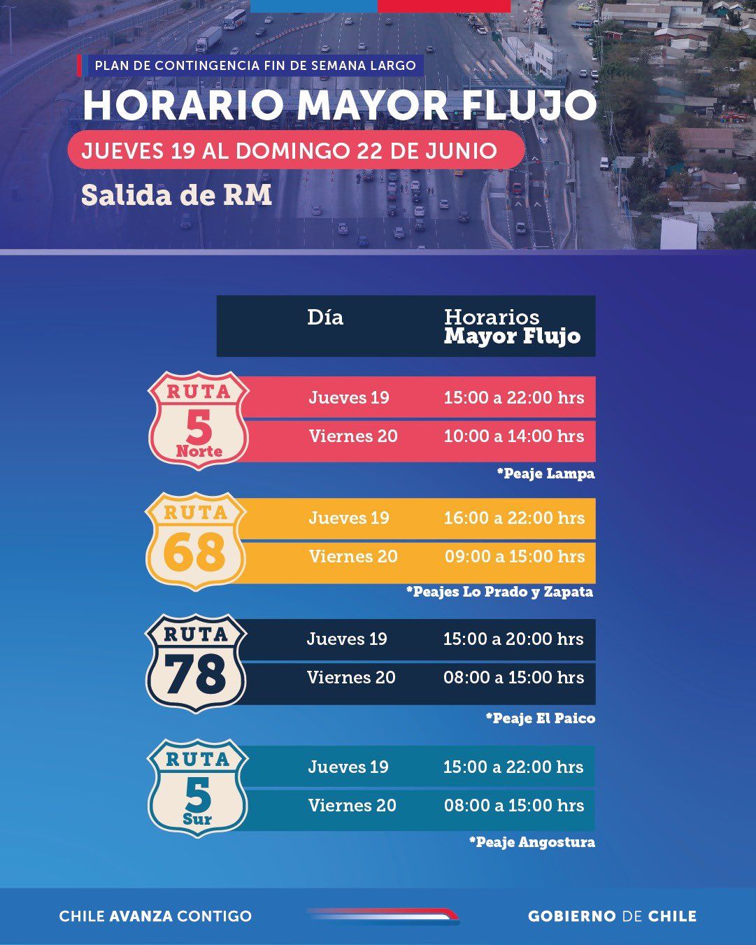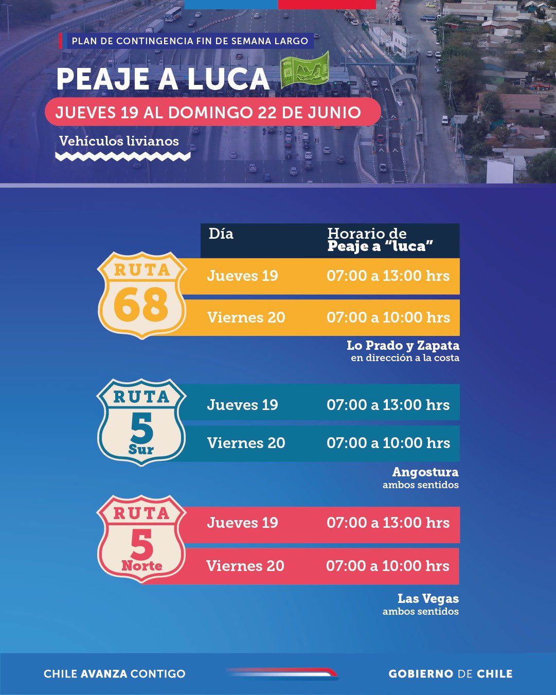 Este viernes comienza el esperado fin de semana largo en medio de las vacaciones de invierno, donde se espera que casi 400.000 vehículos abandonen Santiago, por lo que el Ministerio de Obras Públicas confirmó el regreso del Peaje a Luca.