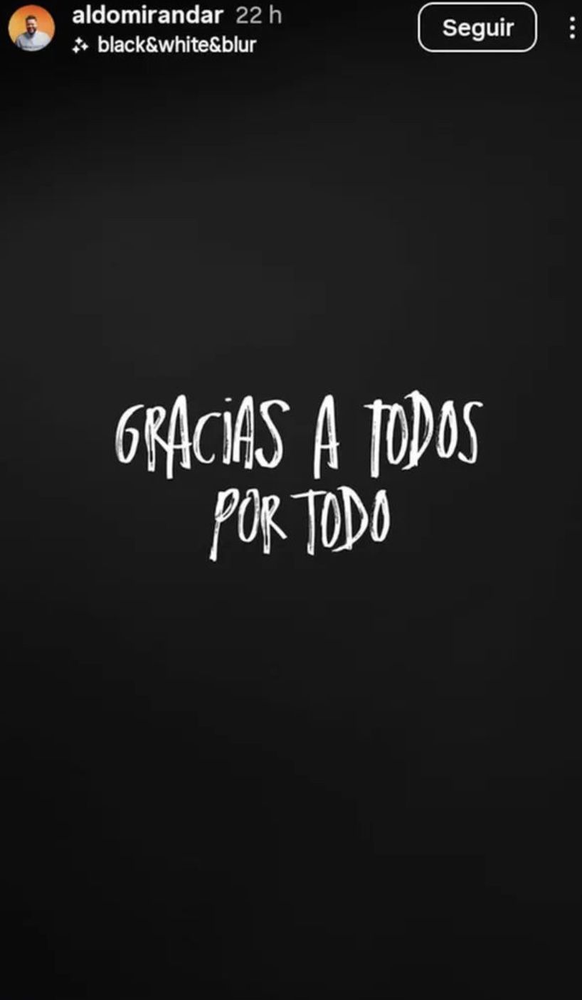 "Gracias a todos por todo", escribió en una historia de Instagram acompañada de una imagen con fondo negro y letras blancas.