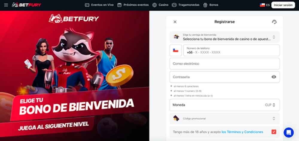 El proceso de registro en BetFury es rápido y sencillo, ya que sólo requiere cinco pasos: