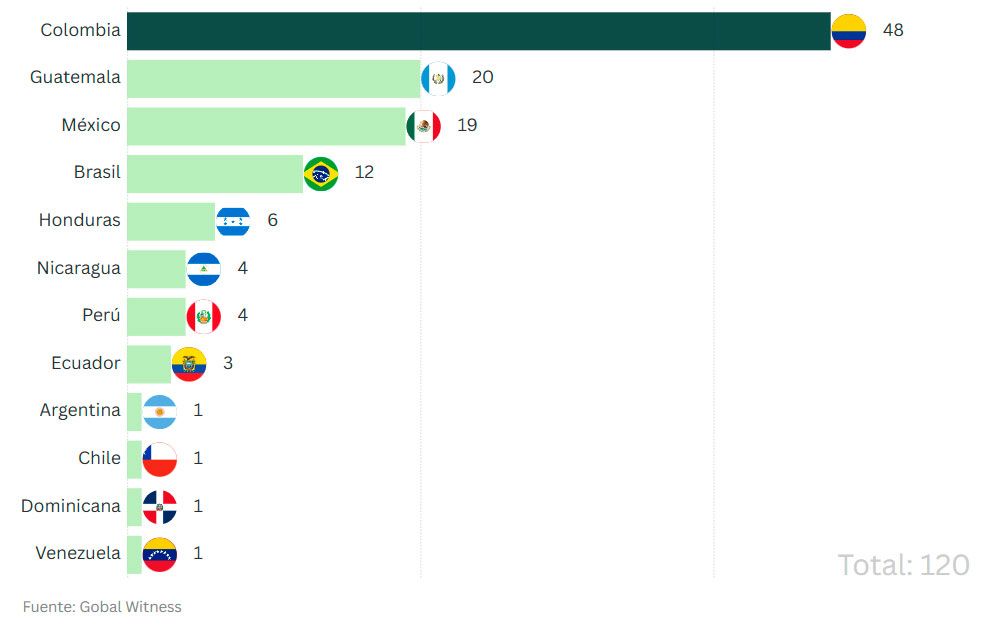 Pese a registrar 31 asesinatos menos que en 2023, Colombia lidera el registro de agresiones con 48 casos, un tercio de los documentados a nivel mundial en 2024.