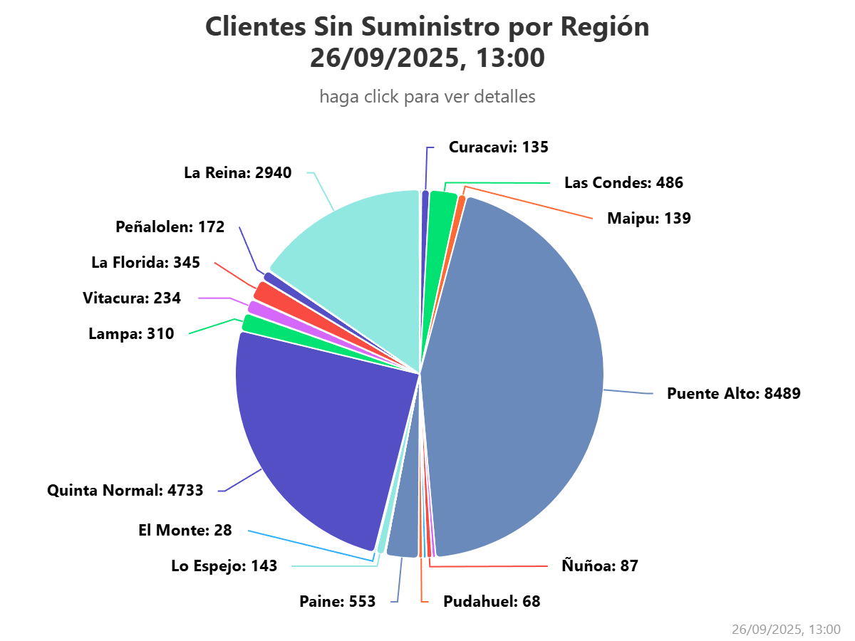 A las 13:00 horas y con las primeras ráfagas de viento que comenzaron a llegar desde la zona poniente a Santiago, comenzaron a producirse diversos cortes de luz por caída de árboles y explosiones de transformadores.