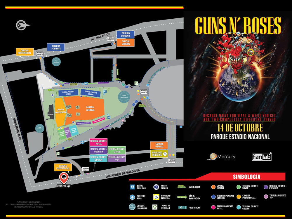 Quienes ya hayan adquirido su entrada para el concierto de Guns N’ Roses deben ingresar a PuntoTicket, en la sección E-Tickets, para realizar la nominación correspondiente. Es importante recordar que, el día del evento, cada asistente deberá portar su cédula de identidad vigente junto con su ticket.