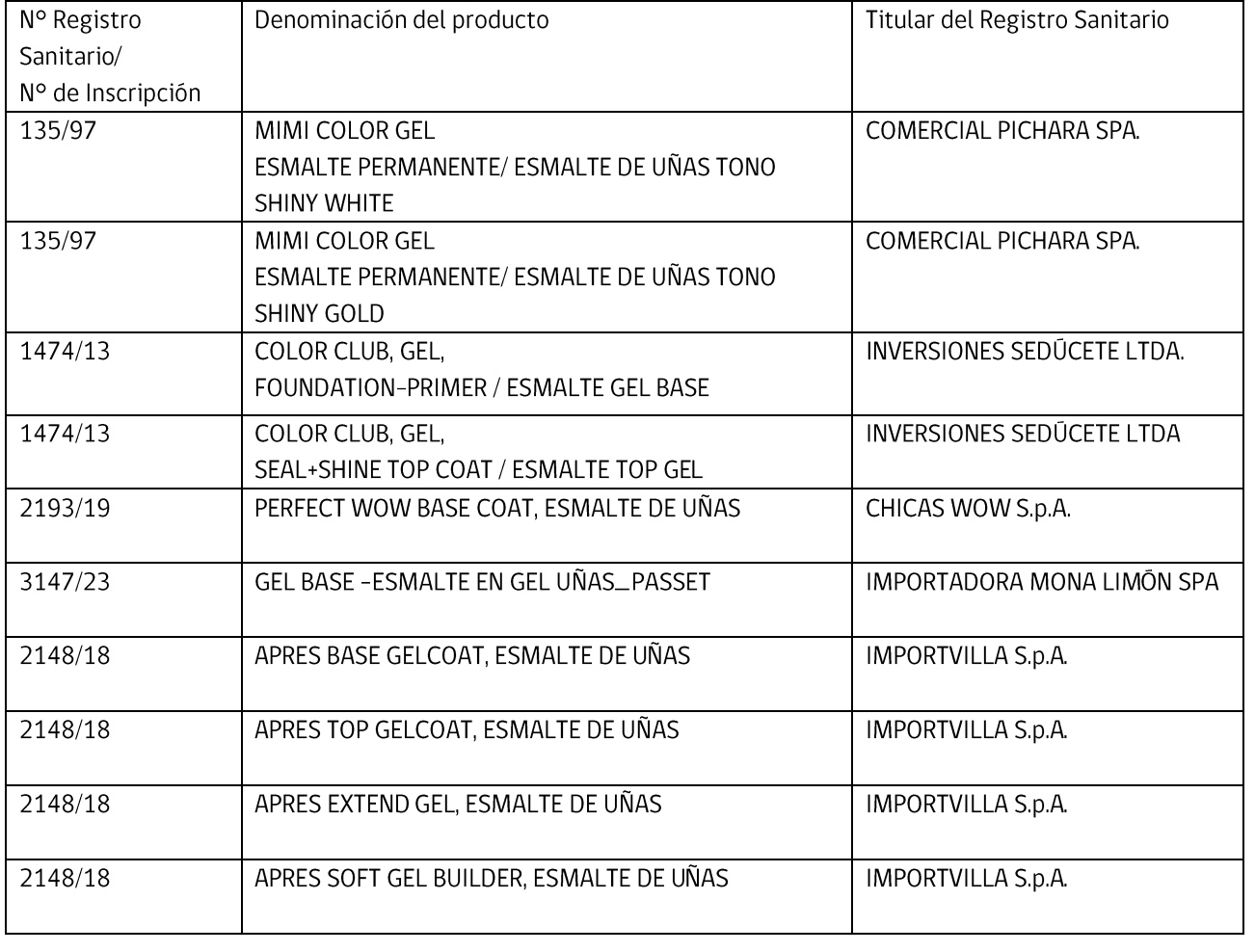 ISP ordena retiro del mercado de 10 pinta uñas de reconocida marca por contener sustancia tóxica prohibida