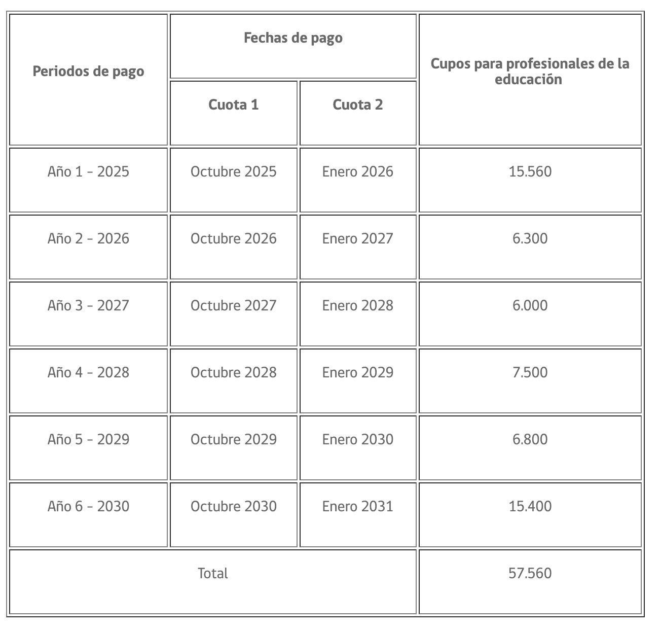 Los beneficiados deben figurar en estado “Beneficiario con un cupo anual de pago”. El pago de la segunda cuota del primer grupo se efectuará en enero de 2026.
