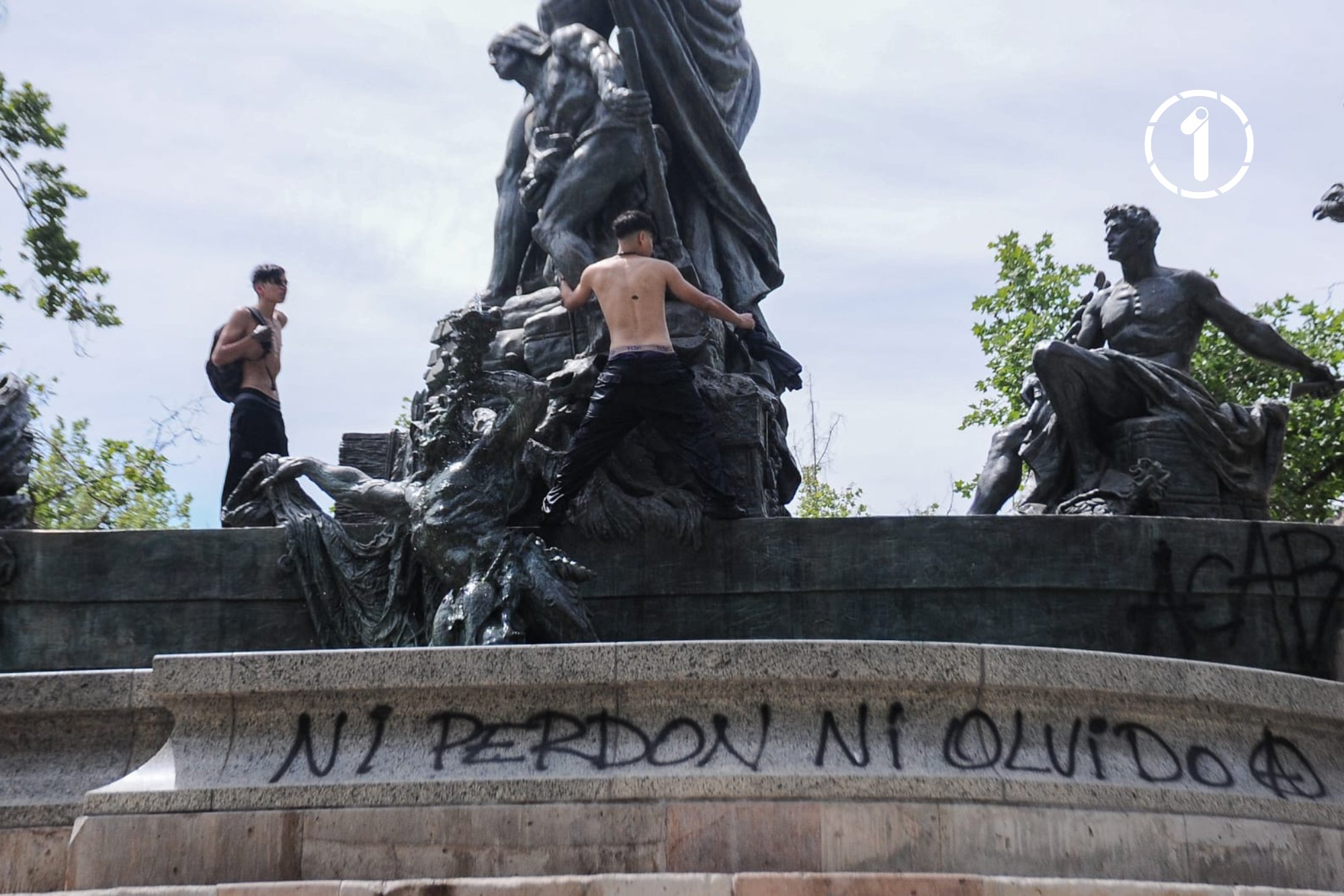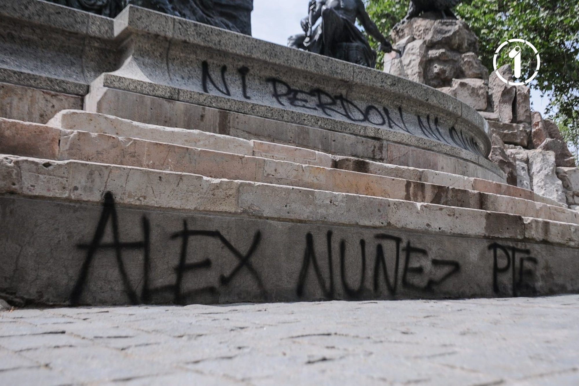 La estructura, recientemente restaurada luego de los daños sufridos durante el estallido social de 2019, apareció con rayados que incluían frases como “Ni perdón ni olvido”.