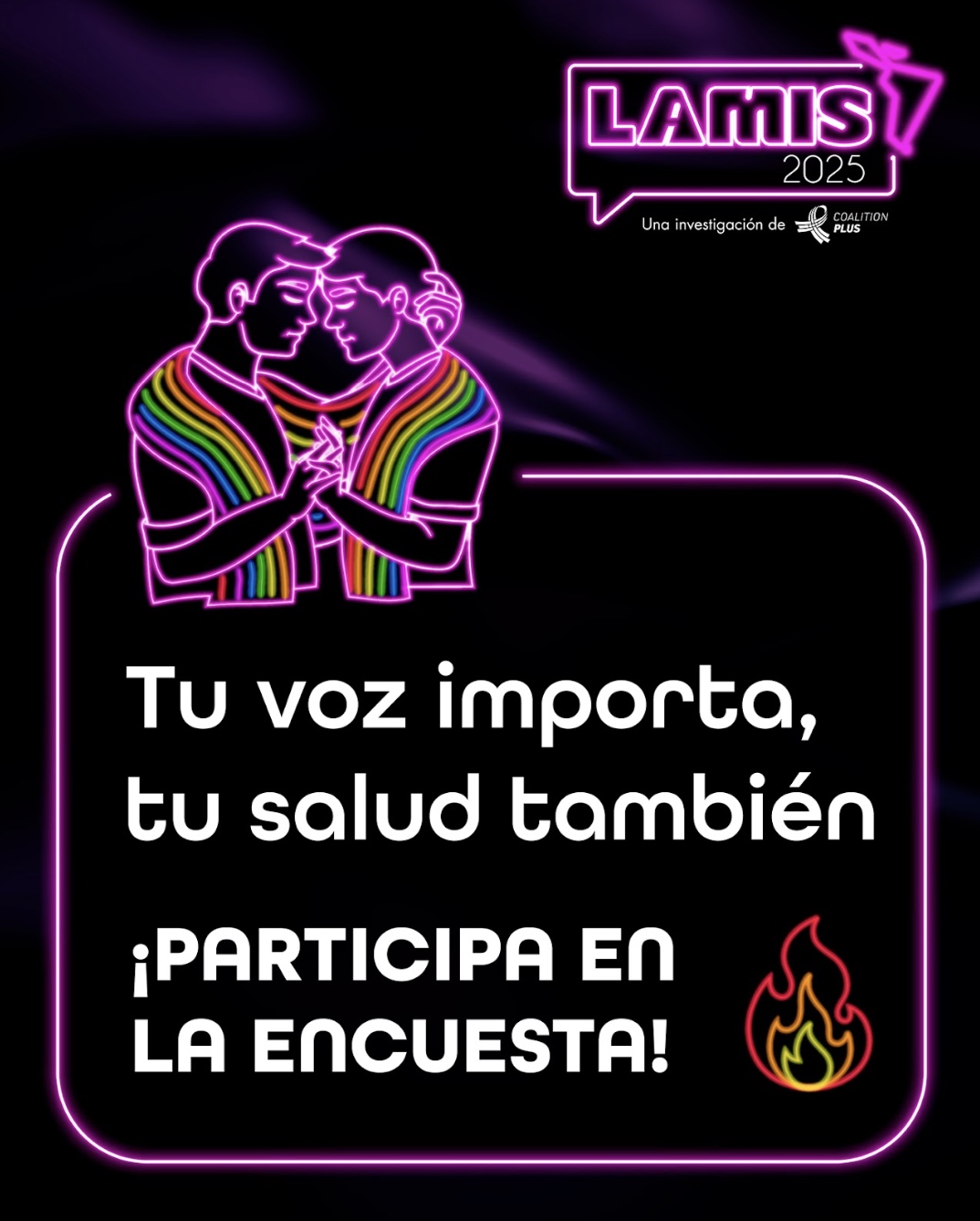 LAMIS (Latin American MSM Internet Survey) es una encuesta online, anónima, dirigida a hombres gays, bisexuales y otros hombres que tienen sexo con hombres (HSH) en 24 países de América Latina y el Caribe. Su primera versión, en 2018, reunió a más de 64.000 participantes, generando datos clave sobre vulnerabilidad y desigualdades en la región. CoalitionPlus
