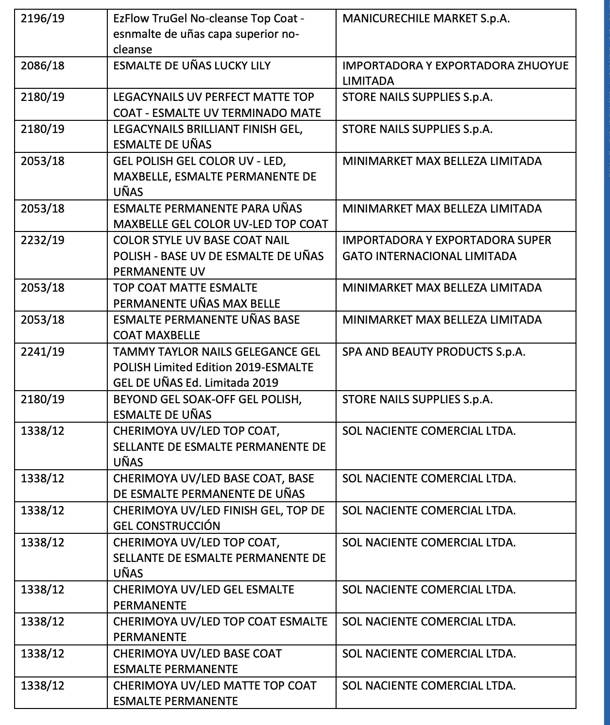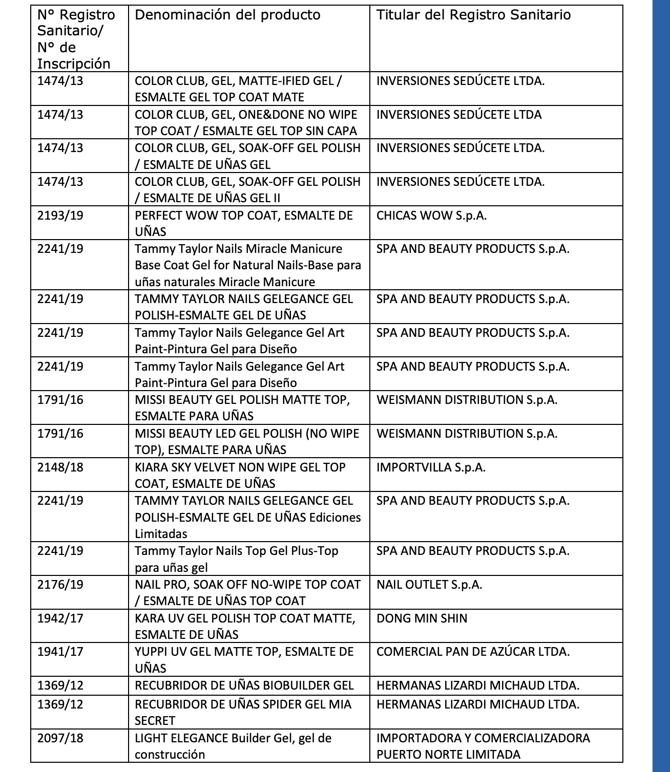 Desde entonces, el ISP ha actualizado la lista de productos para las uñas que contienen este compuesto para que la población sea consciente de sus potenciales consecuencias.
