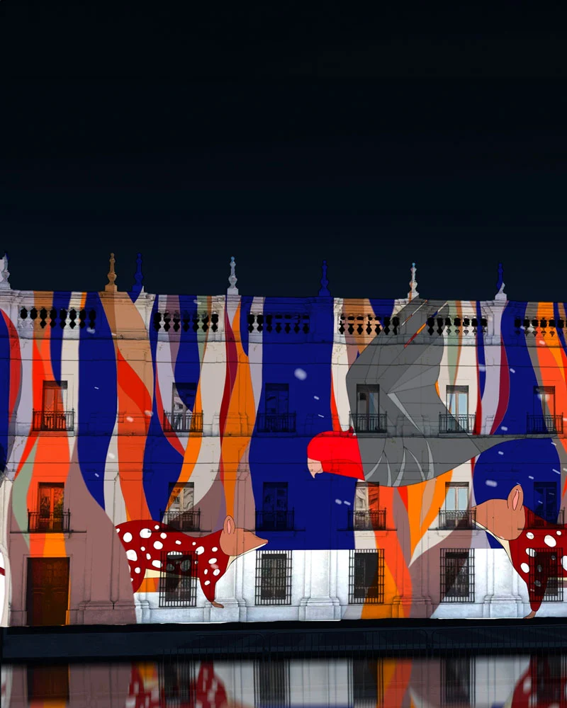 En la intervención lumínica se verán las ilustraciones animadas de Eggpicnic, un destacado y galardonado estudio de diseño chileno-australiano dedicado a la conservación de la vida salvaje con sede en Canberra.