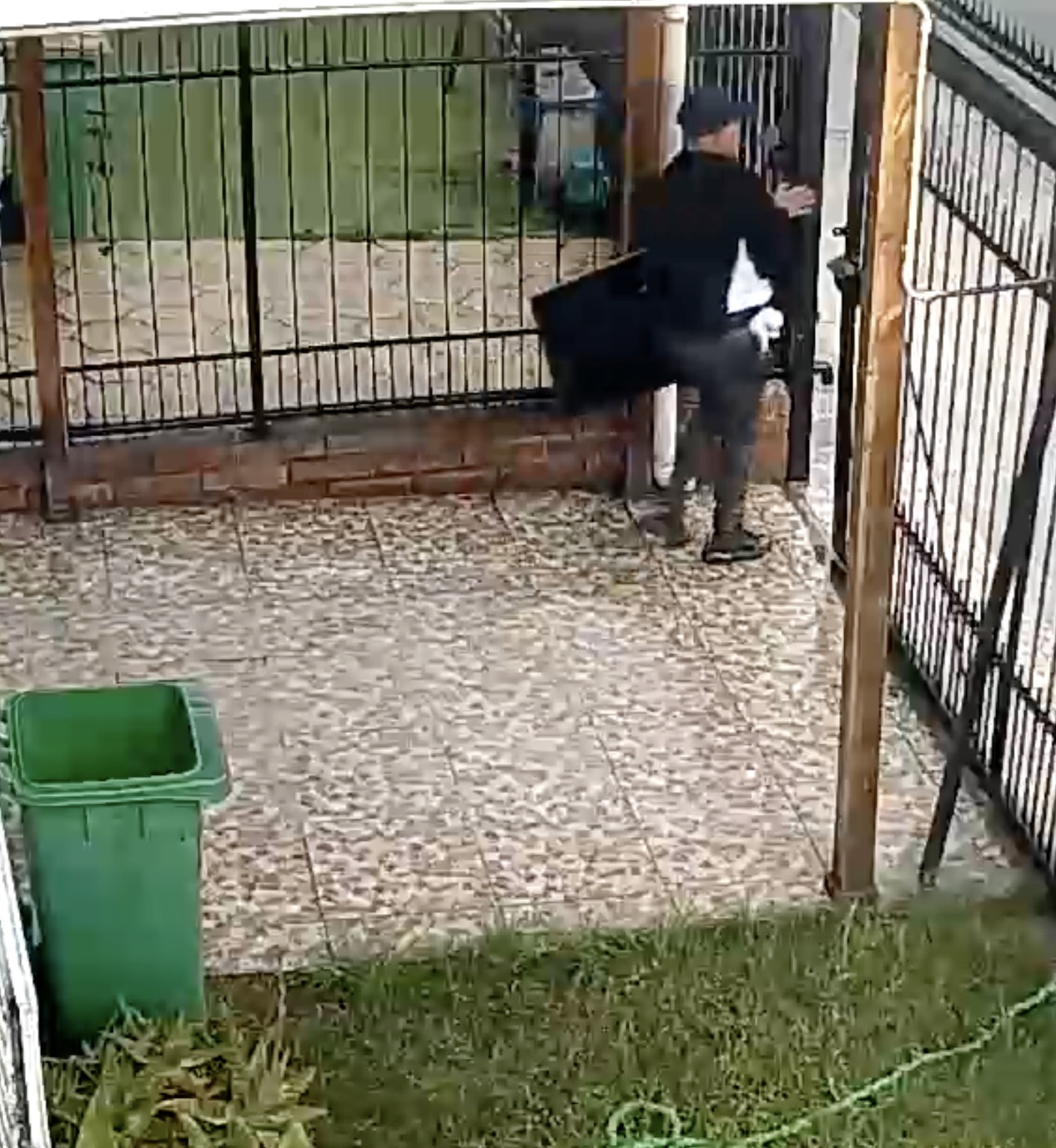 El hecho ocurrió el jueves a eso de las 18:30 horas y las cámaras de seguridad instaladas en su casa lograron captar el delito con detalles.