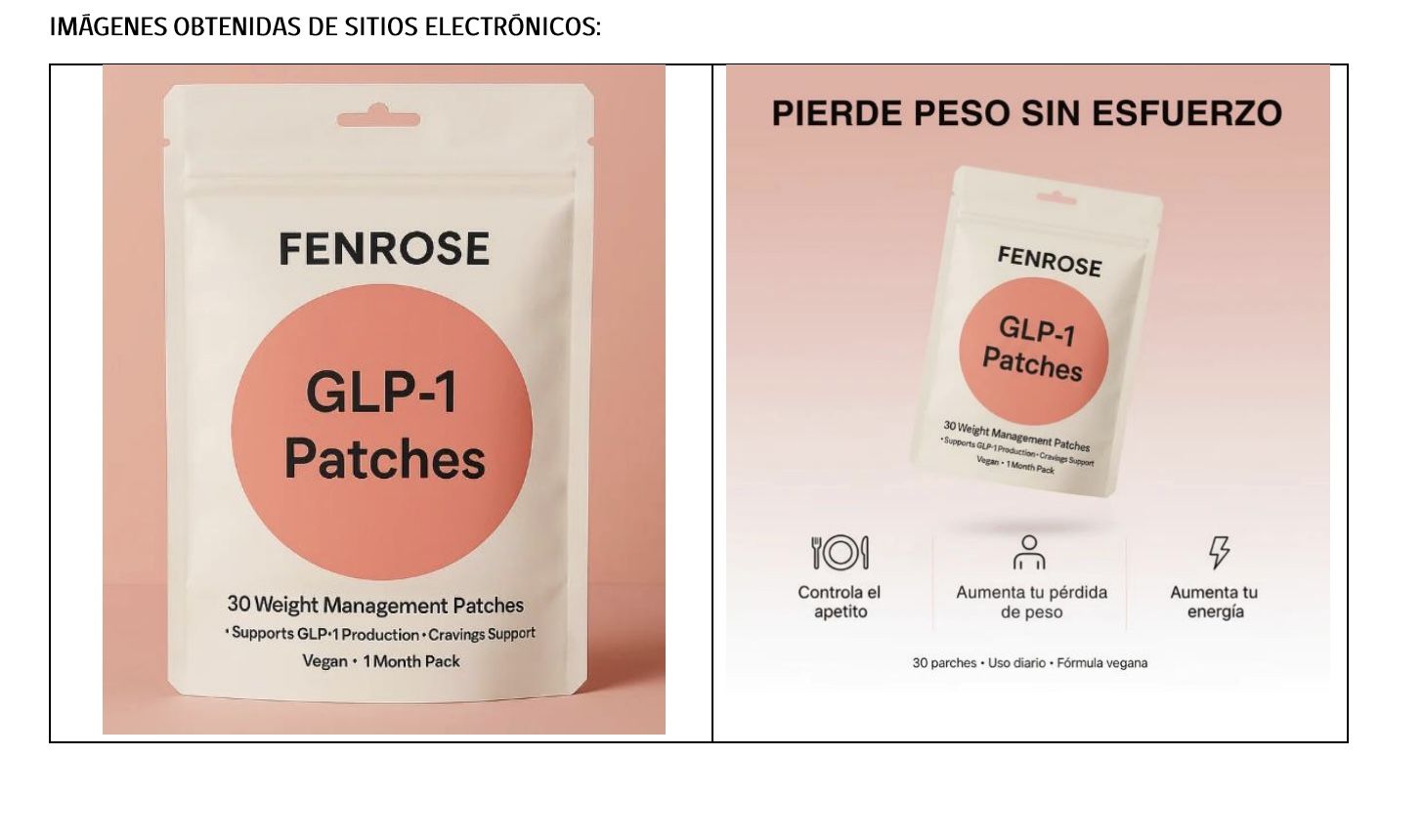 Se trata del producto Patches GLP-1, el cual es vendido a través de medios electrónicos sin contar su origen de fabricación ni la composición indicada en su rótulo.