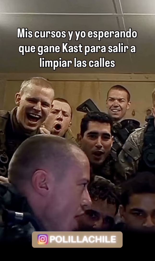 "Mis cursos y yo esperando que gane Kast para salir a limpiar las calles”, se leía en la publicación perteneciente a la cuenta polilla.chile junto a republikastdechile.