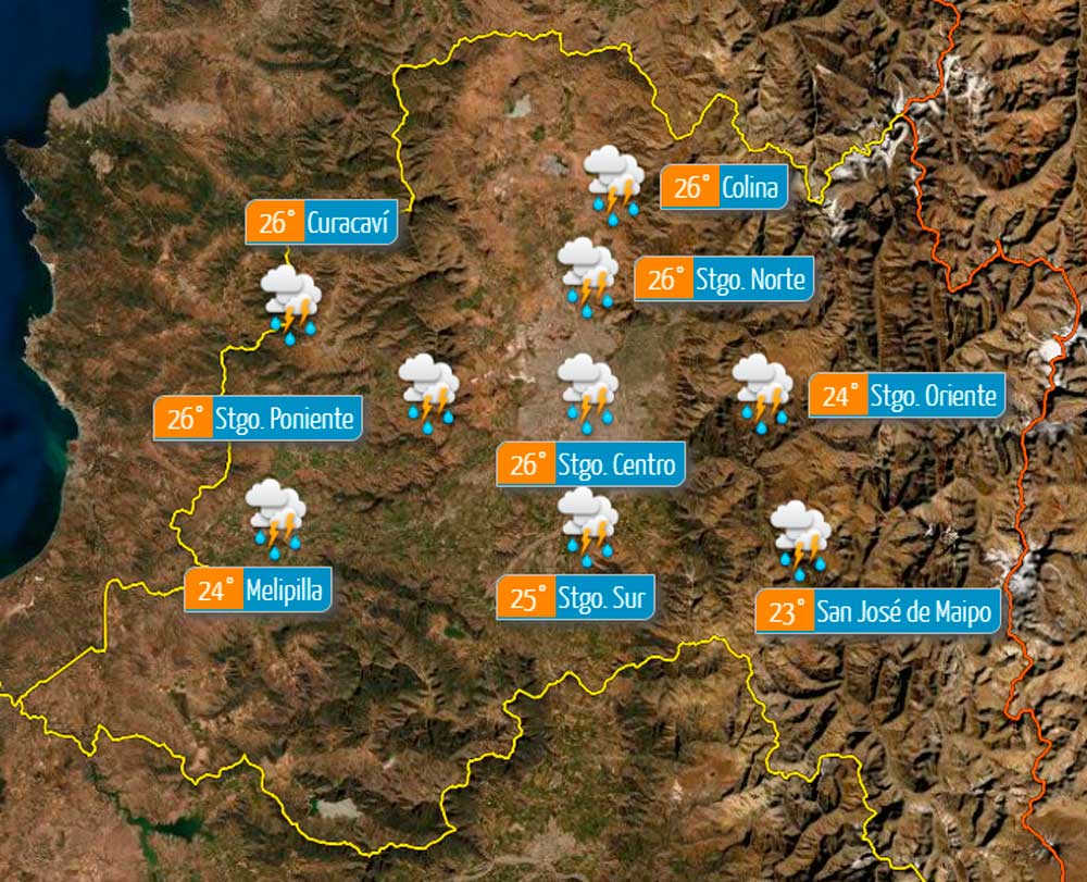 Según la Dirección Meteorológica de Chile, los chubascos serán generalizados en toda la cuenca de la capital desde el mediodía, subiendo las chances tras las 15:00 horas.